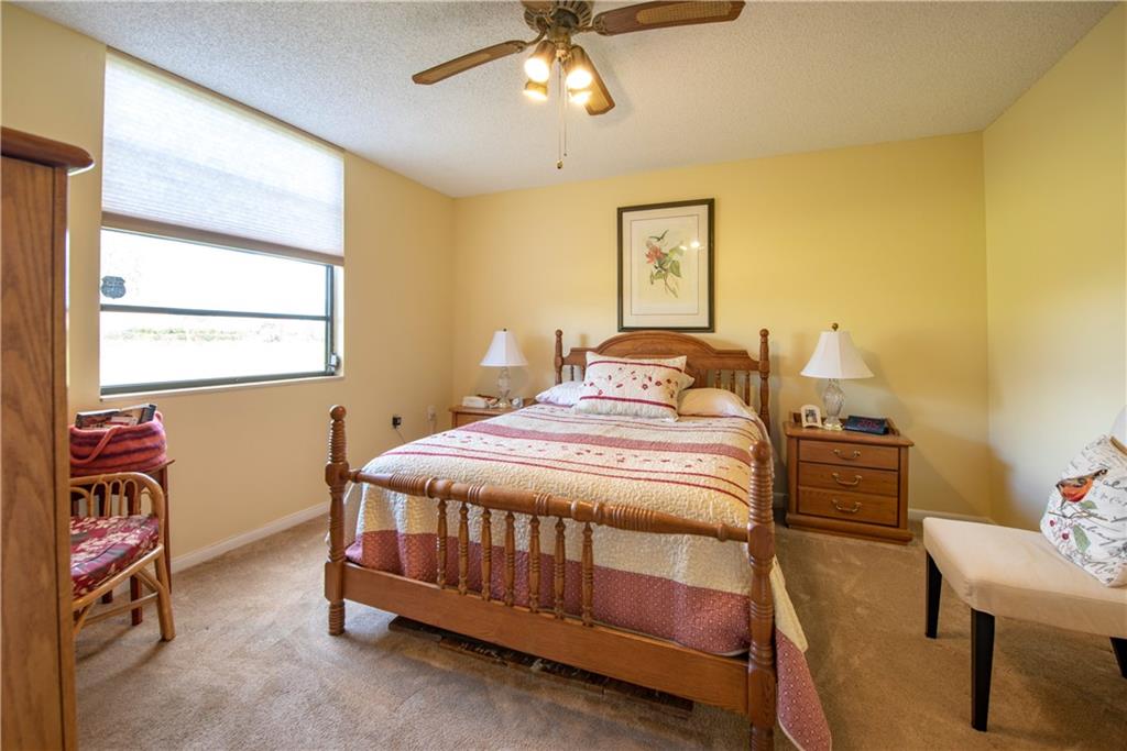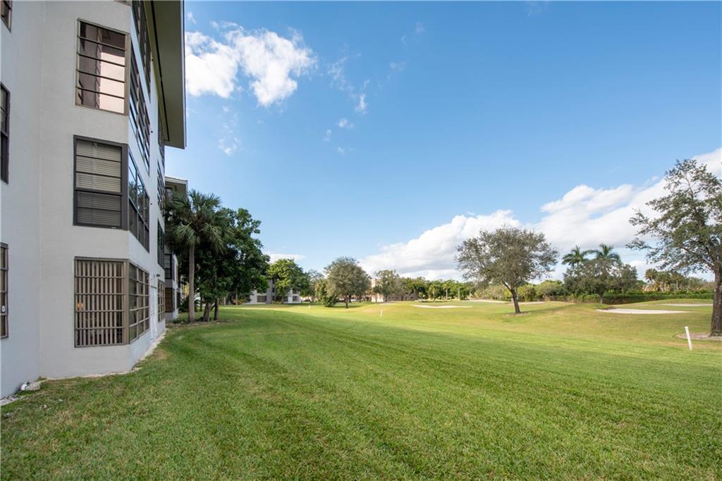 Brand new Impact windows. Immaculate 2BR/2BA + storage room/den/office - first floor corner unit with lovely golf course views and 1,385 SF of living space. Features include foyer entry, eat-in kitchen, spacious living & dining room, split bedroom plan, large master walk-in closet and sizeable laundry room. Maintenance fee includes basic cable and membership to Private Country Club Community - Golf & Pro Shop (+fees), Tennis, 2 Restaurants, Exercise Room, Playground & more. A top school district, convenient location to shopping, dining and major highways for easy commute. Leasing allowed after 2 years of ownership. Reserve Fund (10%). Parking space right in front of the apartment and plenty of guest parking. Great value for this well-maintained community.
