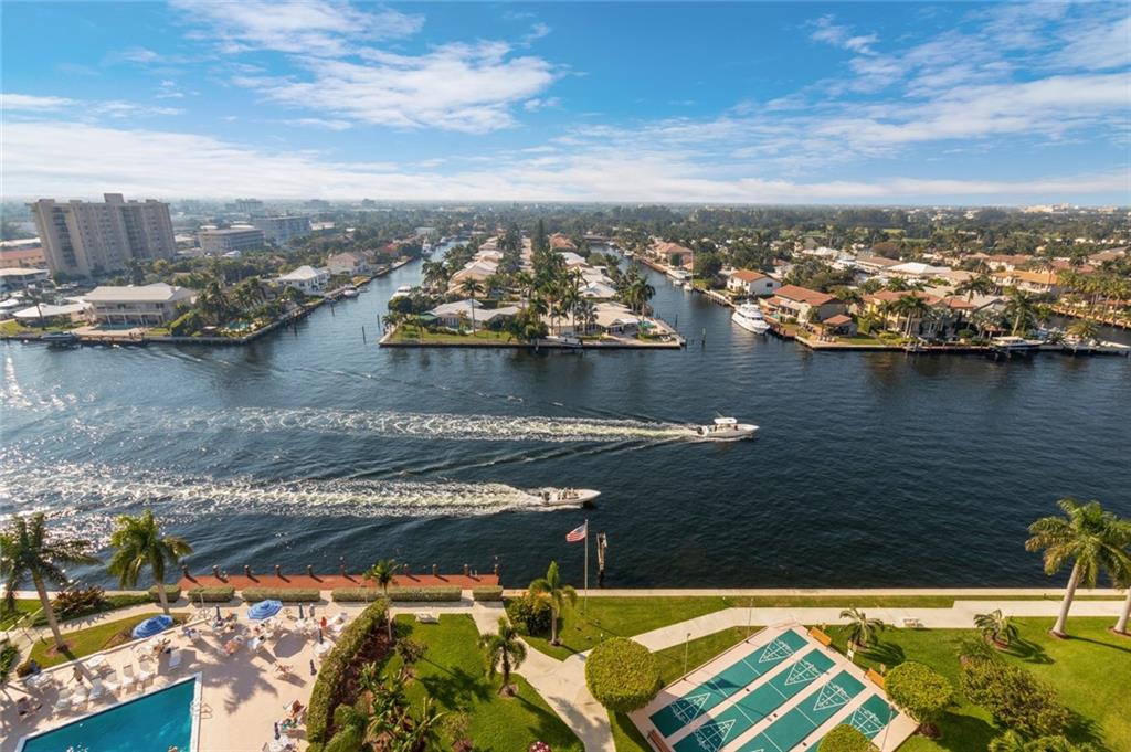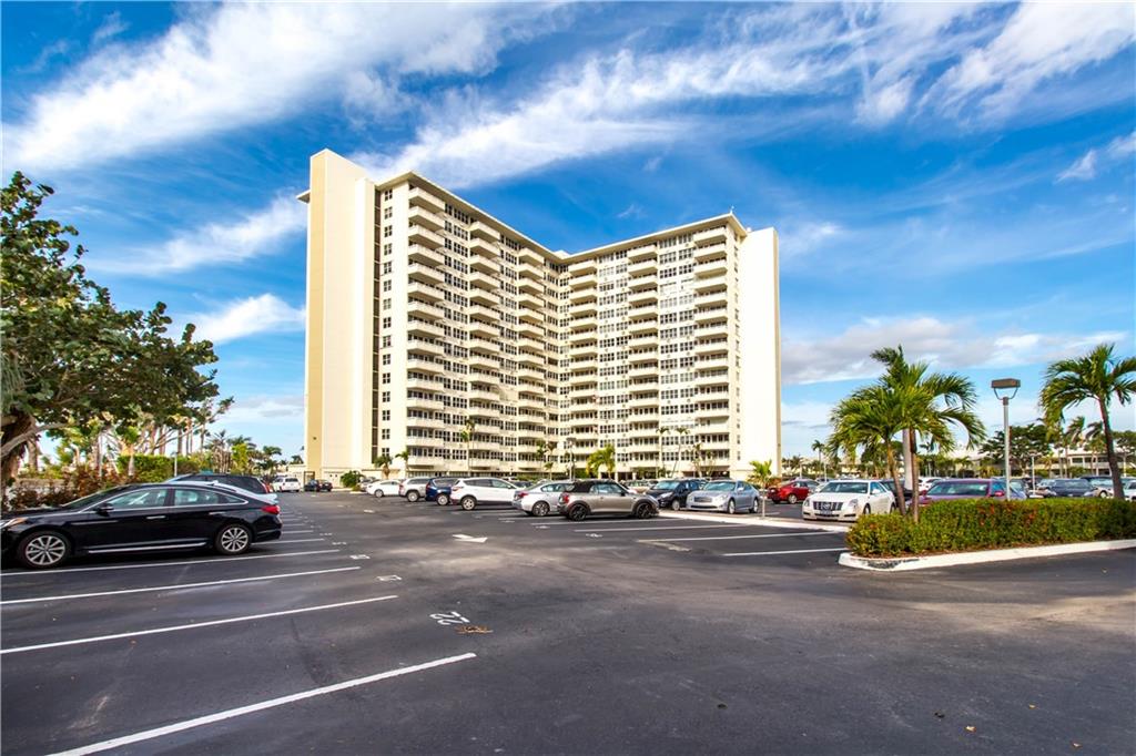 This is the most coveted view in the Coral Ridge Towers complex! Direct unobstructed 180 degree Intracoastal views with daily boat parades and sunsets. This lovely 1 bedroom 1 bathroom apartment has been substantially remodeled from top to bottom. Open kitchen with quartz countertops, chic tile back splash, high quality stainless steel appliances, induction cooktop & custom cabinetry. Remodeled bathroom w/ new tile, vanity & shower. Central AC & hurricane impact windows & door installed. Large private balcony w/ breathtaking views. Resort style pool & garden area situated directly on the Intracoastal Waterway. Located in a beautiful walking neighborhood on a barrier island between the ocean and Intracoastal waterway. Association states one Buyer must be 55, no rentals/pets.