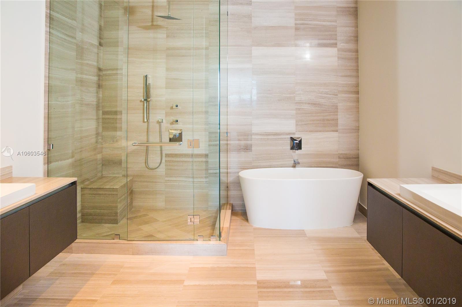 This spacious 2,680 SQFT Penthouse has the biggest custom pool (25'-7' Length / 7'-8' Width), on the roof terrace. This unit features 3 Beds/4.5 Baths, with the additional service room with its own full bath. Upgrade package including luxurious marble, expensive hard wood floors and automated blinds, SubZero/Wolf appliances. Located on direct bay front, The unit features a large balcony including summer kitchen`. Enjoy the resort style amenities such infinity pool, Gym, Spa, Concierge, Valet Parking, Pet walk service . This unit comes with 2 parking spot. Tenant occupied until June 2020
