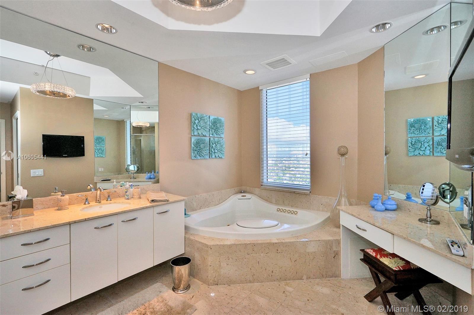 This penthouse has totally unobstructed panoramic views. Light filled, palace in the sky; one of the best floor plans in Aventura. Magnificent corner residence, 3 in-suite bedrooms and 3, 5 baths. The higher ceilings of the penthouse emphasize a sense of space, air, and light. Upgraded with good taste and elegance, used only as a second home and in pristine condition. Marble floors throughout, master bedroom with computer area. Electronic system and surround sound. Gourmet kitchen w/ island, wine cooler & top line appliances. Upgraded washer & drier. All amenities included in maintenance: a 25,000 Sq. Ft. fitness center & spa, wine cellar, movie theater, piano room, 4 tennis courts, 3 pools. Atlantic l is one of the most elegant buildings in Aventura. Easy to show.