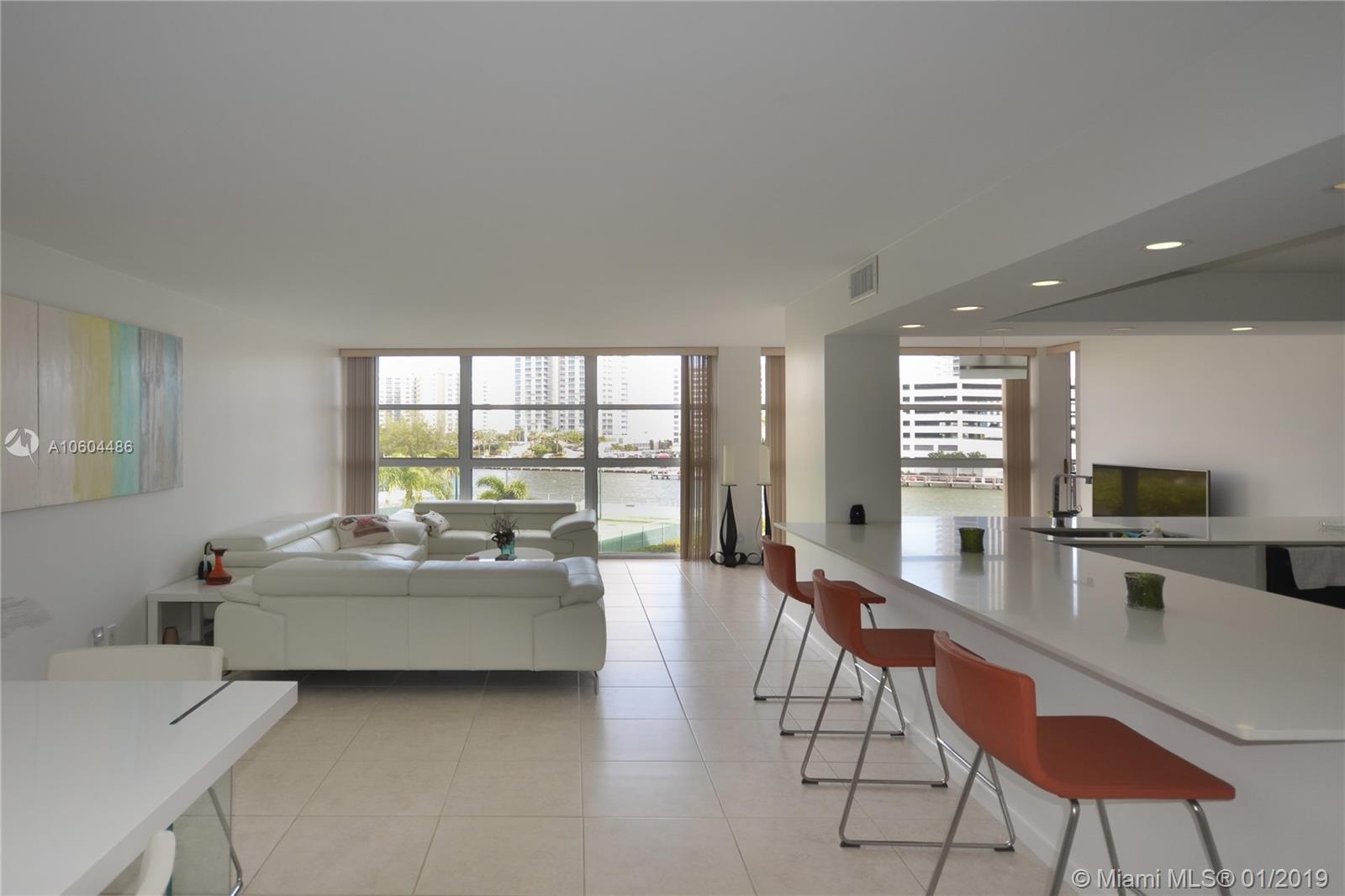 Intracoastal view from all floor to ceiling windows.Spacious remodeled unit with den, open kitchen with quartz counter top and stainless steel appliances. Smooth ceilings and tiled throughout. Building has many amenities with double lobby. Close to restaurants, shopping, casinos and Aventura Mall.