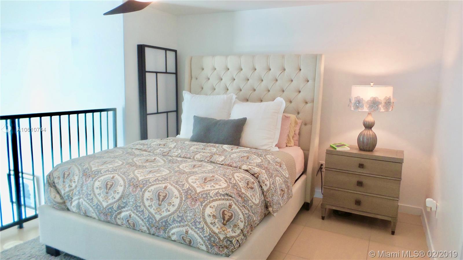Amazing bay views from this 2-story Loft with East exposure. Best line in the building, this one-of-a-kind unit offers 19'4" high ceilings, tile floors throughout. Water, basic cable and Internet included. One assigned parking space on the same floor. Walk to Whole Foods Market, Bayfront Park, metro mover and just opened Novikov Bar & Grill Restaurant, Joe & the Juice downstairs and 16 screens' Silverspot Cinema. Building offers luxurious life style, 24-hr front desk attended. Chic downtown living at its best!