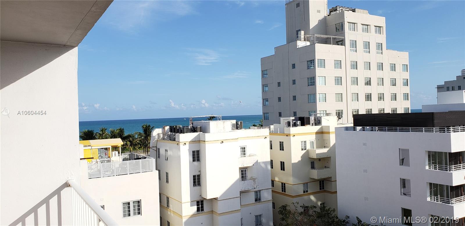 UNIT READY FOR NEW OWNER TO UPDATE TO THEIR TASTE AND OWN A BEAUTIFUL CONDO IN A RESIDENTIAL BUILDING IN THE ART DECO DISTRICT. JUST 1/2 BLOCK FROM THE BEACH, LITERALLY!! UNIT HAS OPEN LAYOUT ALONG WITH OCEAN & CITY VIEW. BUILDING IS FENCED AND HAS 1 ASSIGNED COVERED PARKING SPACE. AMENITIES FEATURE RENOVATED ROOFTOP POOL WITH ENTERTAINING AREA, GYM, ELEVATORS. PET FRIENDLY. PRICED TO SELL! VACANT!