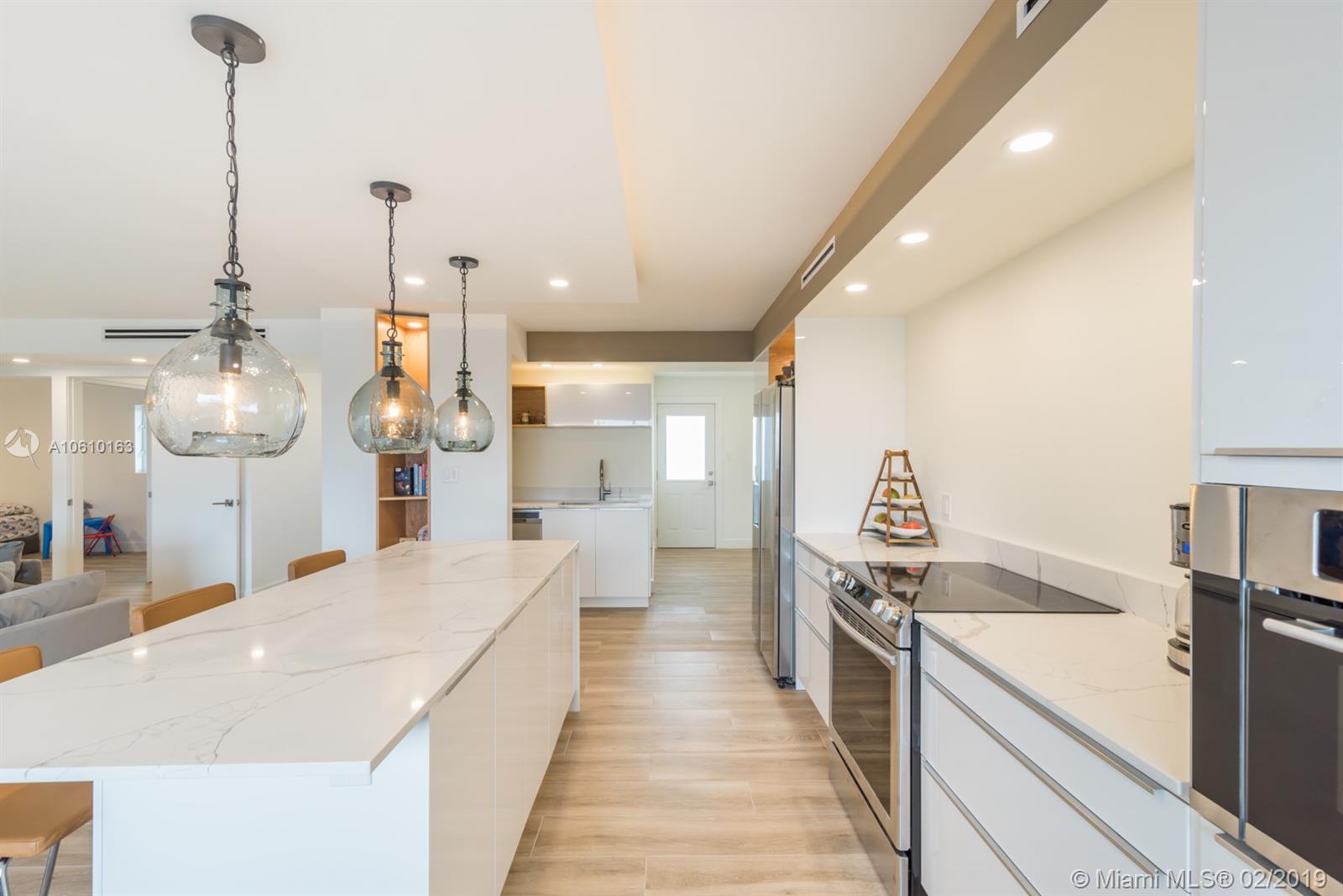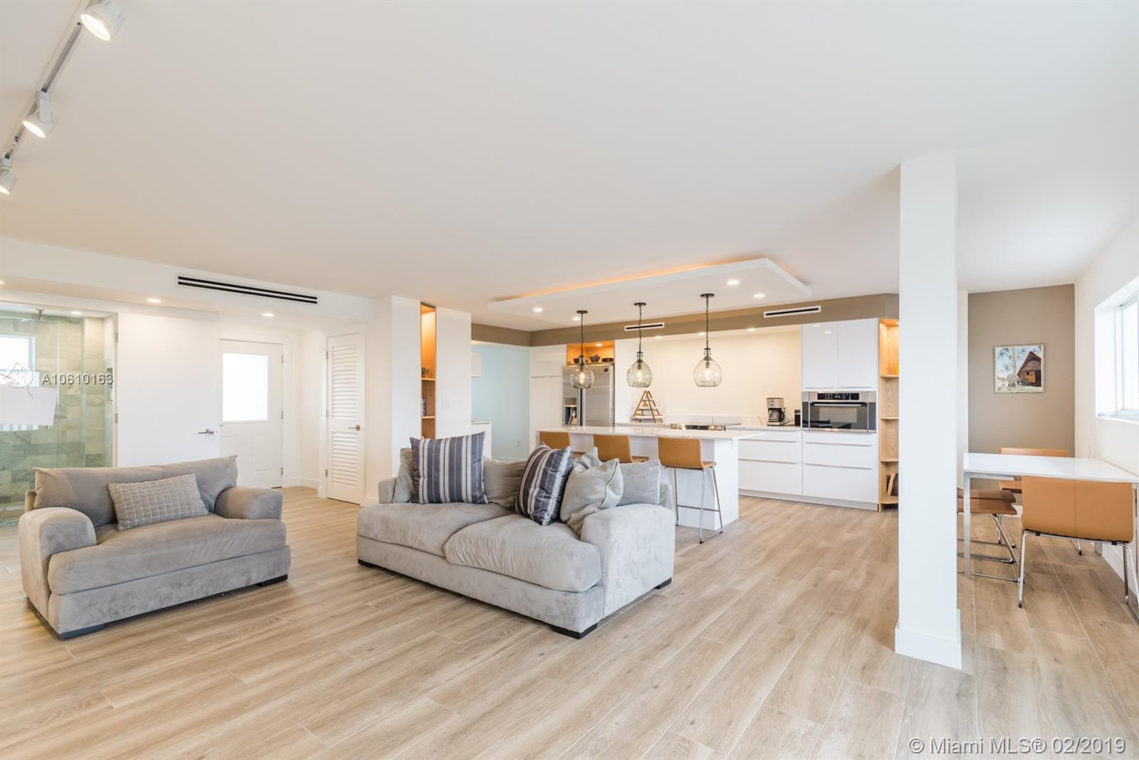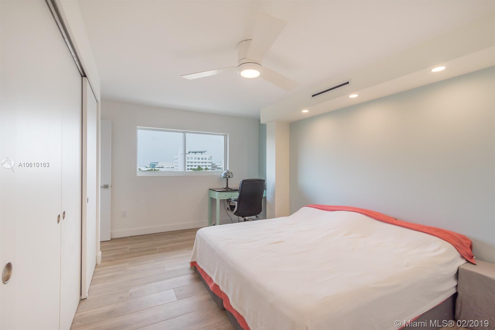 Floor-through penthouse w/brilliant natural light, 100% brand new construction & spectacular unobstructed views. Steps from Lincoln Rd and the beach. Huge open concept kitchen & living area, perfect for entertaining. Finished with high end stainless appliances, sleek white cabinets, Carrera style quartz countertops and large waterfall island. Two generous bedrooms, each with en-suite bathroom & large closet with custom built-ins. Contemporary LED lighting and sound insulation throughout. Hurricane impact windows & doors. Bosch Washer/Dryer. One assigned parking space. This stunning restoration is fully permitted. Building is completing 40 yr. re-certification, including new elevator & lobby refresh with no buyer assessment.