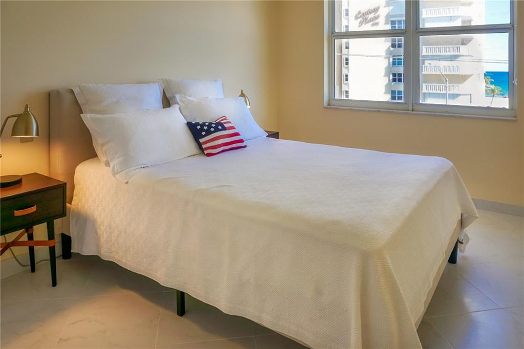 This is the one you were waiting for! Beautiful newly remodeled and furnished 2/2 condo just steps from the beach! Bright unit with ocean views from both bedrooms and living room. Impact windows, new A/C, brand new appliances. Modern white tiles throughout. Unit shows extremely well and is move in ready. This boutique building completely renovated and well maintained offers a heated pool, tennis court, shuffleboard, and community room. Laundry room on every other floor. Unit comes with a storage. One assigned parking spot, guest parking right across the street. Cannot lease/rent unit for 2 years after purchase. No dogs, cats only. Sellers motivated, bring all offers !!!