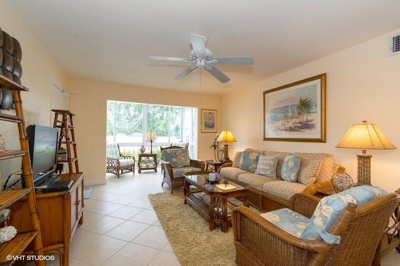 Beautifully remodeled first floor unit in lovely waterfront community. Open kitchen with granite counter tops. Impact windows throughout. Screened porch enclosed into Florida room. Spacious walk in shower in master and jacuzzi tub in 2nd bathroom. Furniture being sold with unit. Boat dockage available for $1.50 per foot of total boat. Community features 4 pools, one on the intracoastal to watch the boats go by, tennis courts, BBQ area, workout room, clubhouses and more! Close to shopping, restaurants and the beach!