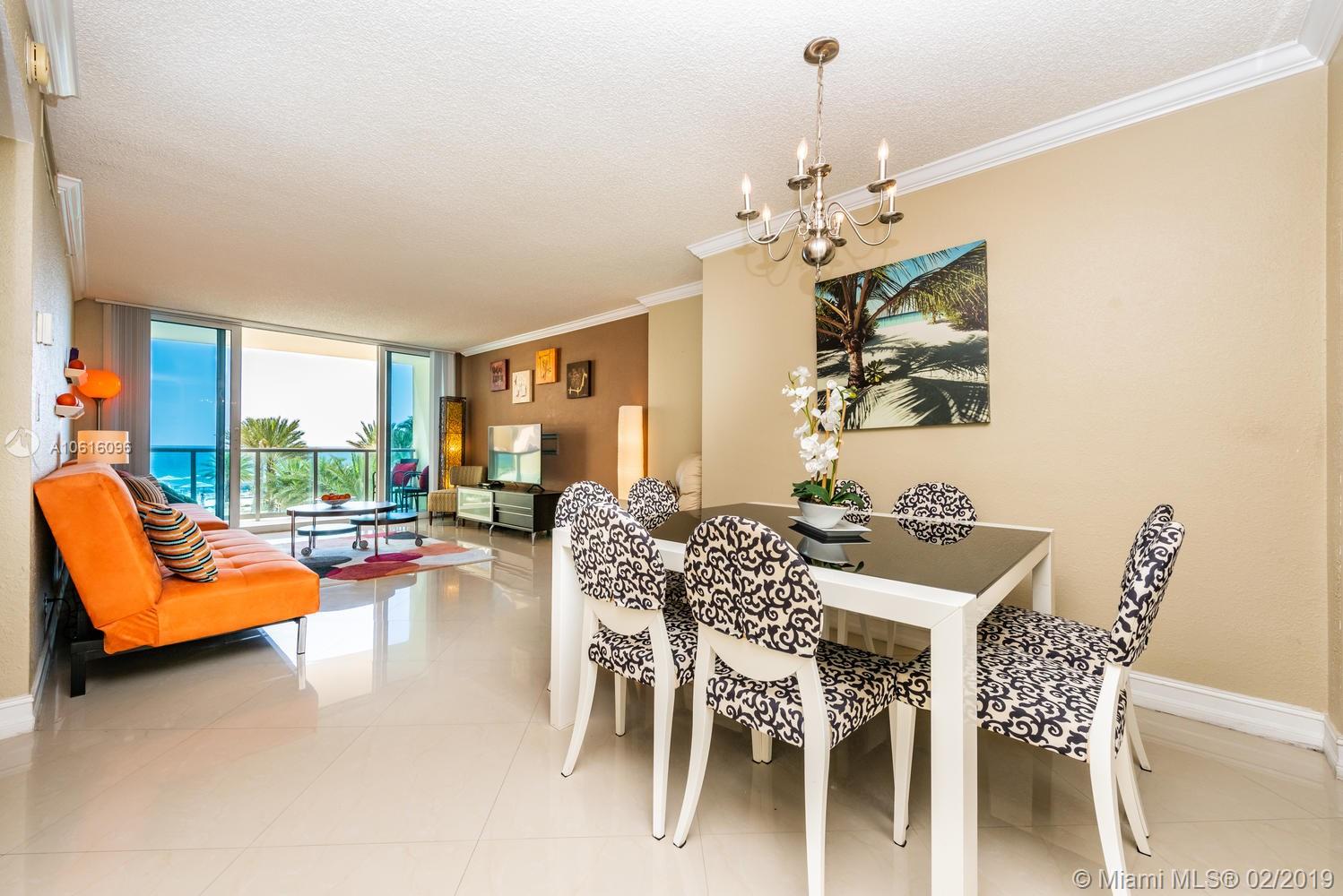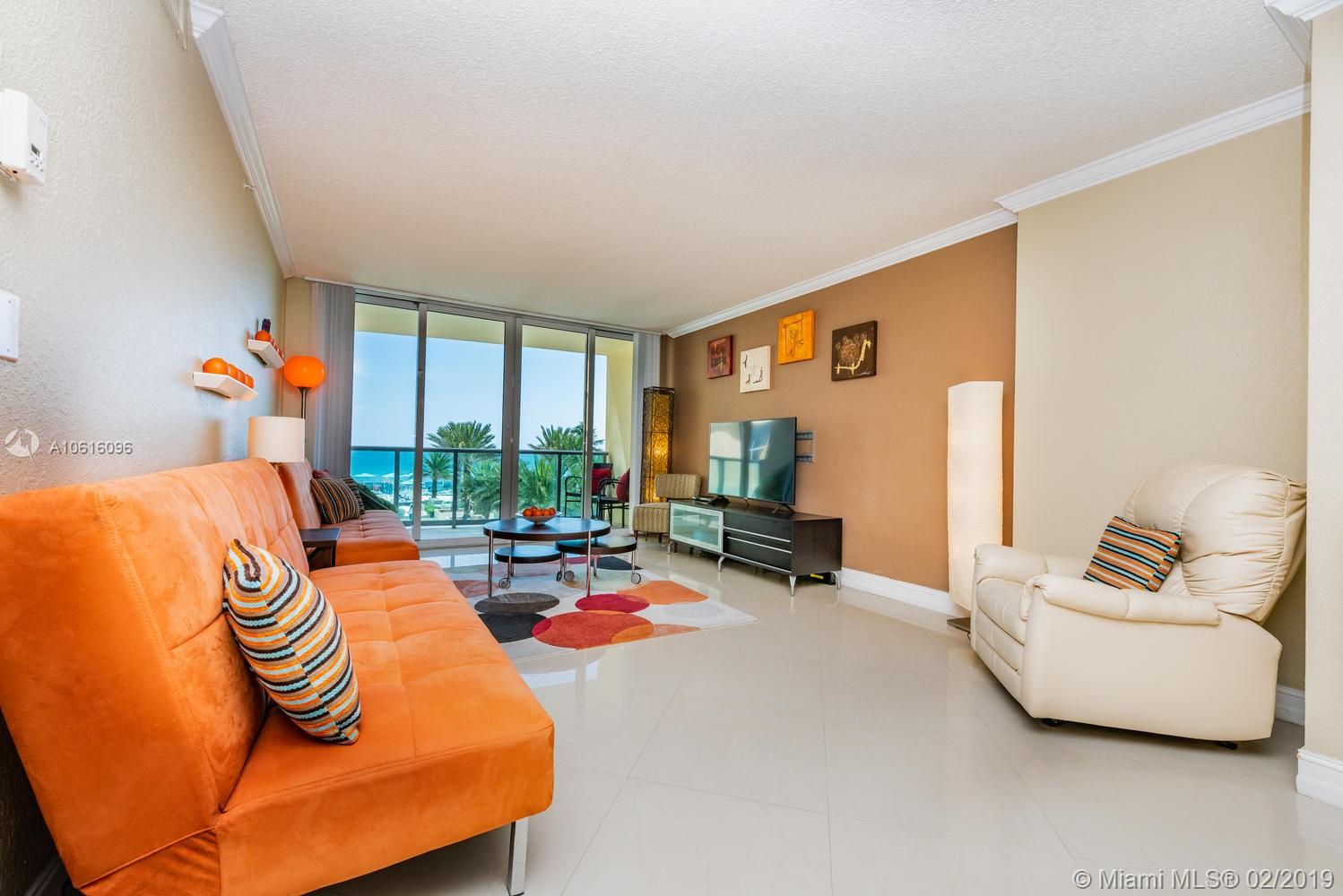 What a Great opportunity to own this bright and spacious condo with breathtaking ocean views. New porcelain floors, remodeled bathroom. Hurricane proof windows, spacious balcony, tile floors, granite counter-tops. Experience The Wave Lifestyle - one of the finest and most exclusive Luxury buildings on the Beach for the price value. Great amenities: Newly remodeled Resort style pool deck with lush palm trees, fountains, Jacuzzi, GYM overlooking the ocean and complimentary Beach services. Condo is perfect for Investors or as a vacation home. You can rent 4 times per year, 90 days minimum. Pet friendly building- can have 2 pets up to 40 LB. For primary residence for qualify buyers’ 90% financing available.