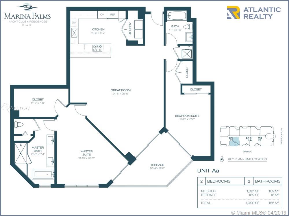 A brand-new immaculate waterfront residence with a 40’ boat slip in adjoining marina. Top-of-the-line finishes include imported Italian Snaidero cabinetry and SubZero/Wolf appliances, porcelain flooring throughout, oversized windows and balconies with direct water views, marble bathrooms with frameless glass shower and soaking tub. Marina Palms is a full-service amenity building and marina located in North Miami with easy access to Aventura, Miami Beach and Ft. Lauderdale airport. . - sq ft as per floor plan- Boat slip # BS-108 can be bought separately for $190K. Covered parking + 1 storage. Basic cable and internet included.