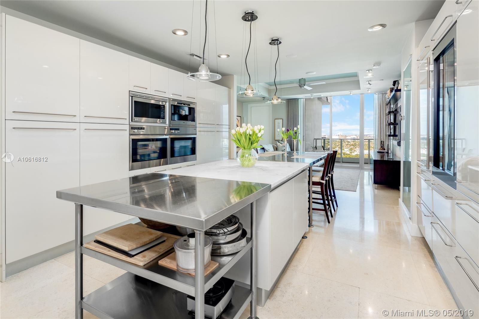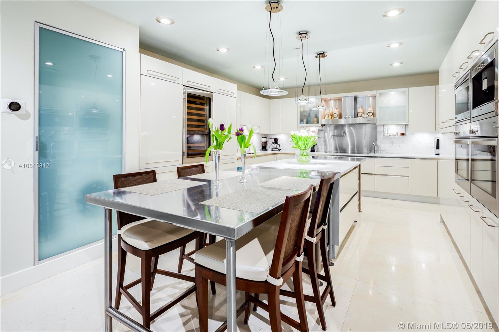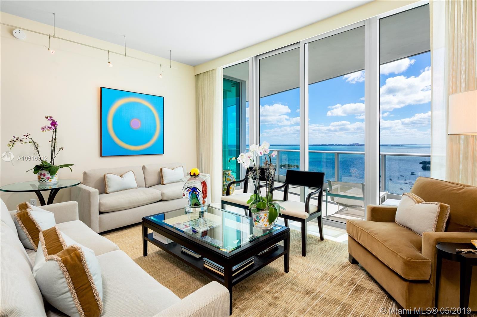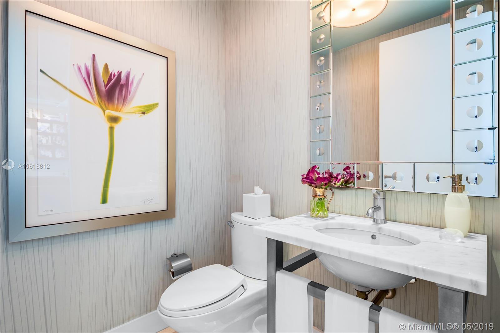 This masterfully designed Penthouse boasts 9.5’ floor-to-ceiling windows framing sweeping bay/sunset views. The customized floor plan features the only expansive gourmet kitchen available in this line, w/12 ft marble and stainless island, Miele, Sub-Zeros and Snaidero lacquered cabinets. Sophisticated master suite features a spacious custom closet and luxurious bathroom. This highly curated condo also has formal entertaining space and separate family room plus two additional en-suite rooms and features expansive views, 372 btl Sub-Zero wine storage, large slab limestone floors, frosted glass and cherry Lualdi foyer, exquisite built-ins, and custom lighting, sound and window treatments throughout. Enjoy the exceptional lifestyle and state of the art amenities of Grovenor House at its best.