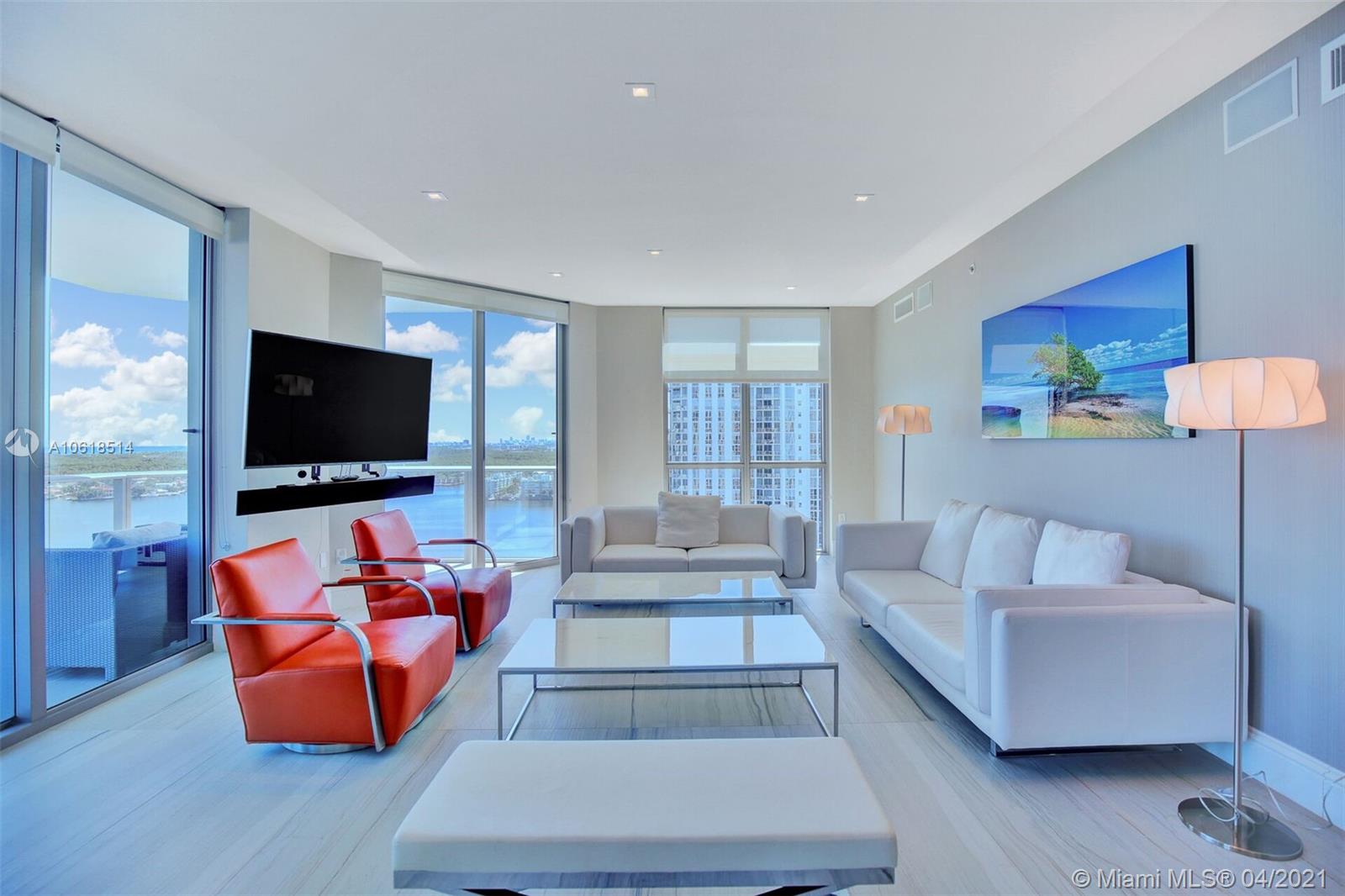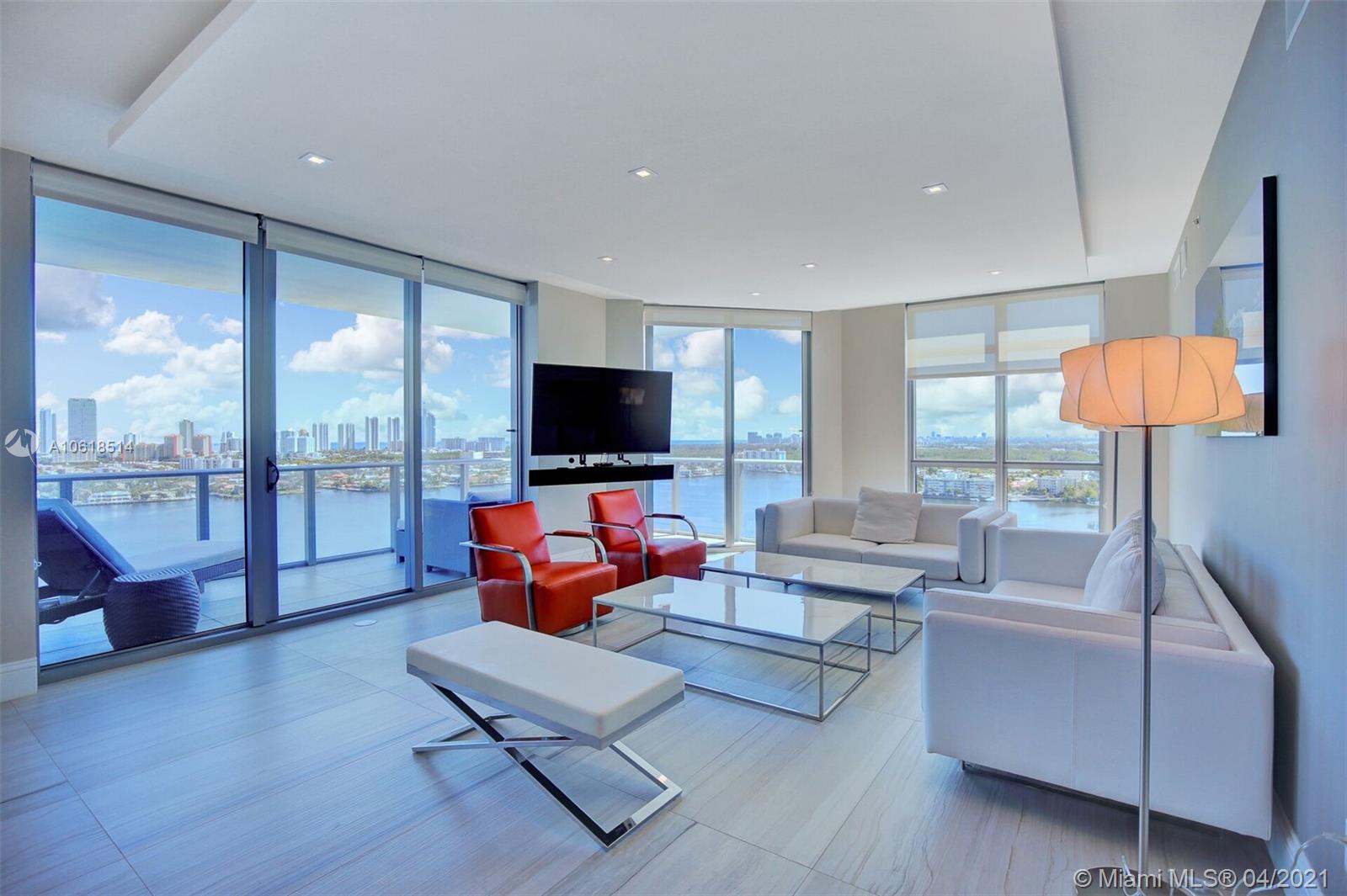 Priced to sell! Experience stellar panoramic views of the intracoastal toward the ocean from this stunning & desirable Southeast corner 3 bedroom, 3.5 bath sky home at Marina Palms Residences. Beautiful natural toned porcelain flooring in all living areas & marble fitted baths. Enjoy a gourmet kitchen fitted with Snaidero Italian kitchen cabinetry as well as Wolf, Sub-Zero & Miele appliances. Professionally designed by 'Interiors By Steven G', this turnkey residence reflects true Miami style. Marina Palms offers every amenity including smart technology, impressive fitness center, infinity pool, spa & 24 hour valet, concierge, children's area, news café & full service Marina & Yacht Club. The residence has 2 assigned tandem parking spaces & storage. PLEASE USE SHOW ASSIST TO SCHEDULE