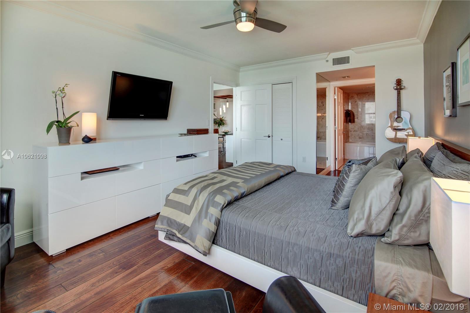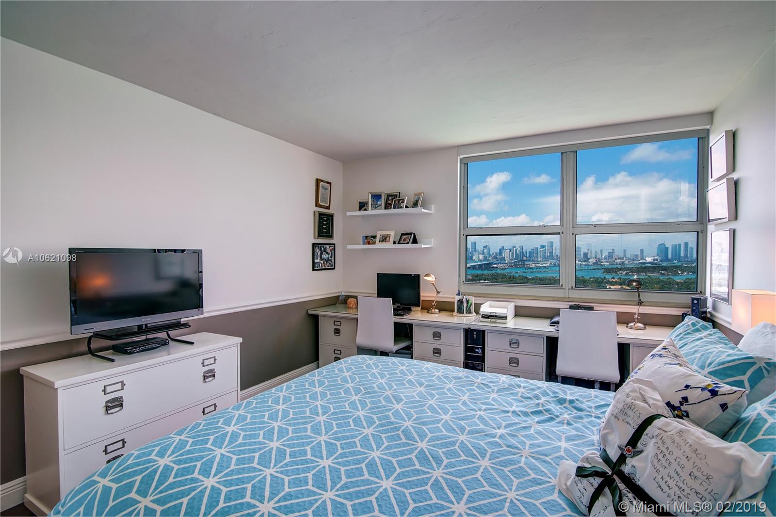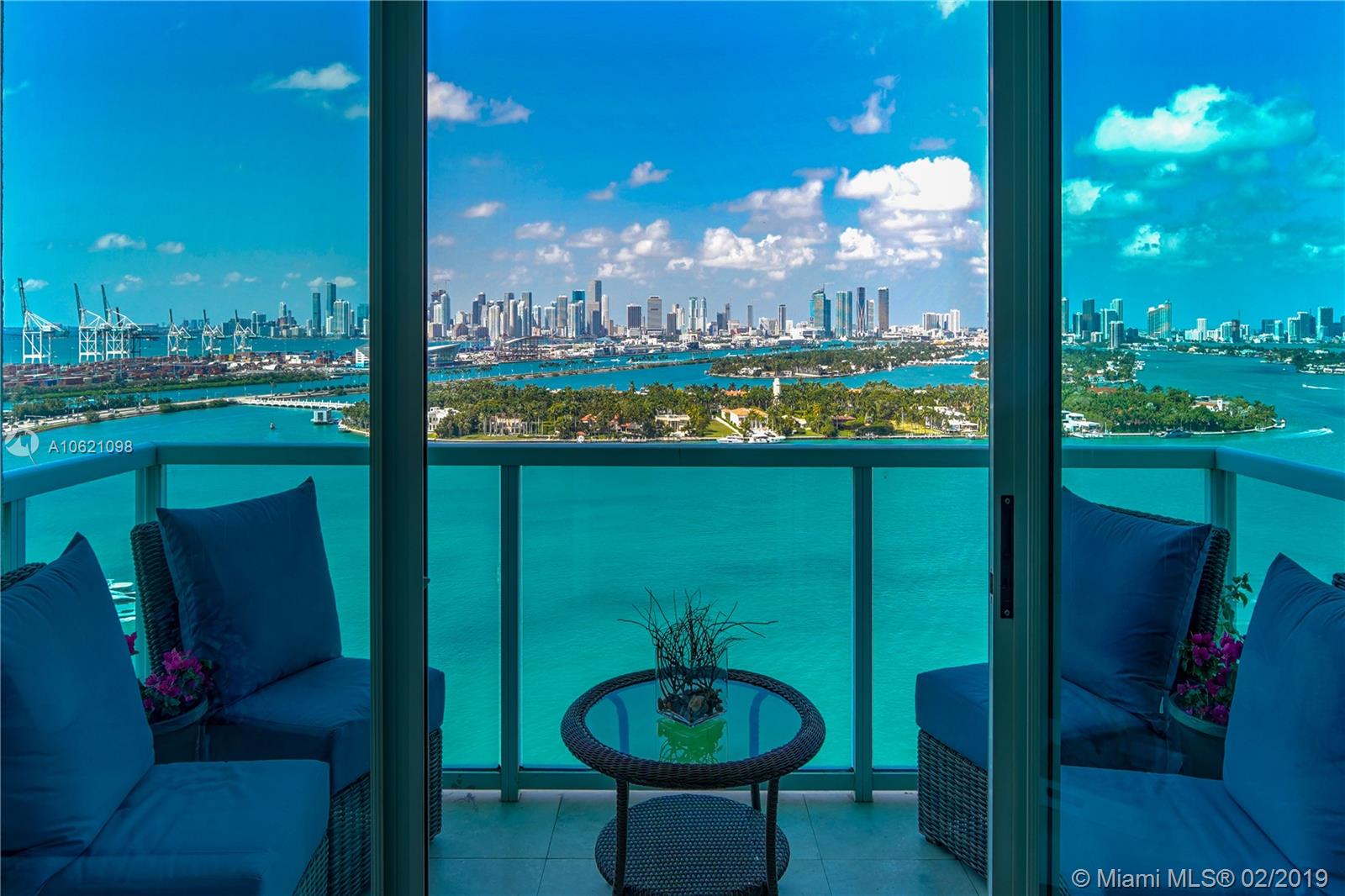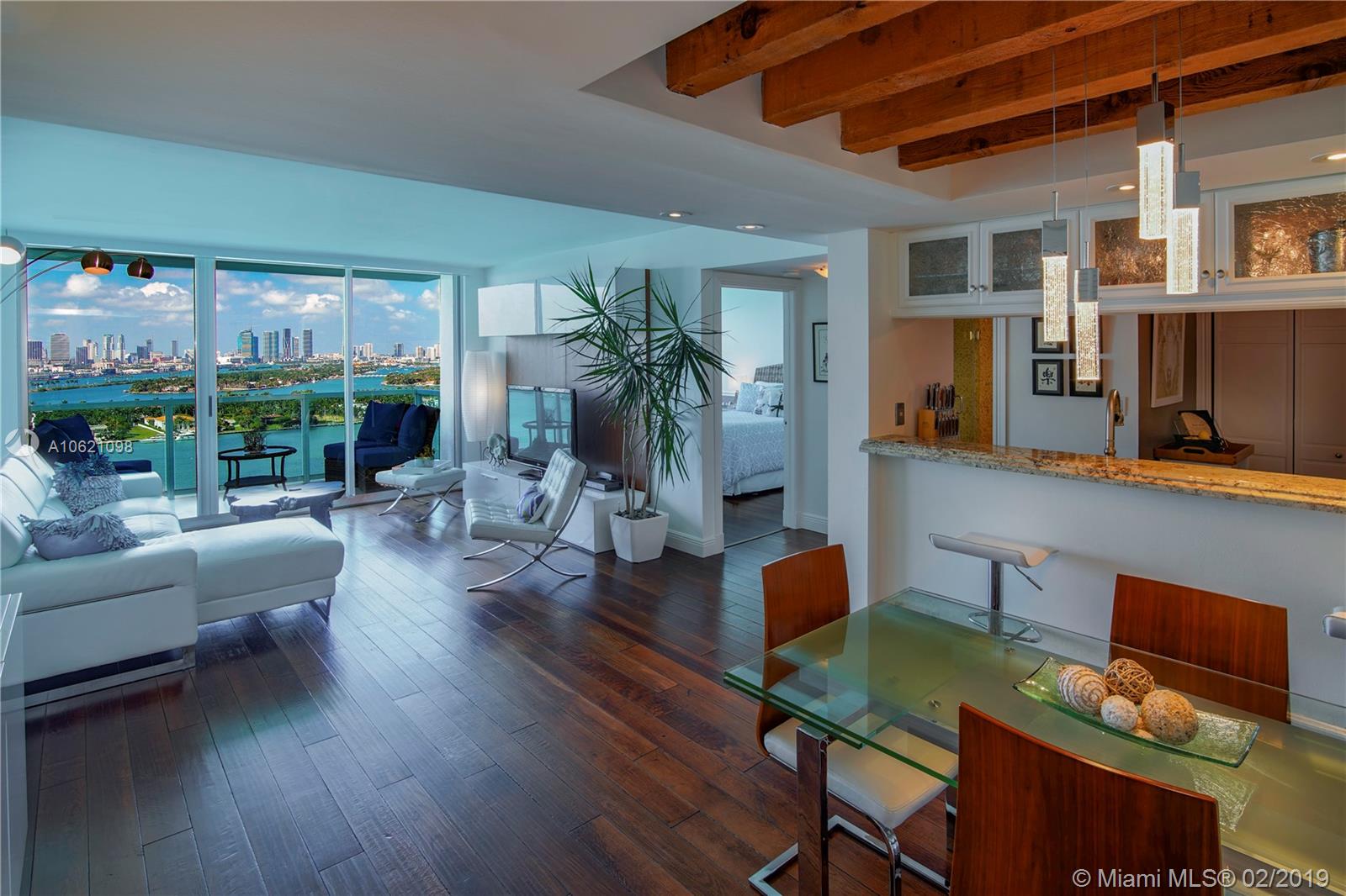 Unobstructed Direct Bay views of Biscayne Bay with the Miami skyline. Sit on your Balcony or Lay in Bed as you watch the multi-colored Sunset or the Cruise Ships depart on their voyages. Furnished Renovated 2 Bedroom Split Floorplan in the Heart of Miami Beach. Amenities include: Tennis Court, 2 Pools, Gym, in-building Hairdresser and Grocery store. Boat Slips available. Two Nearby Grocery Stores: Whole Foods (8 minute walk) and Publix (4 minute walk). Centrally located, the Floridian, is near South of Fifth, West Avenue, Sunset Harbour, and the Beach.