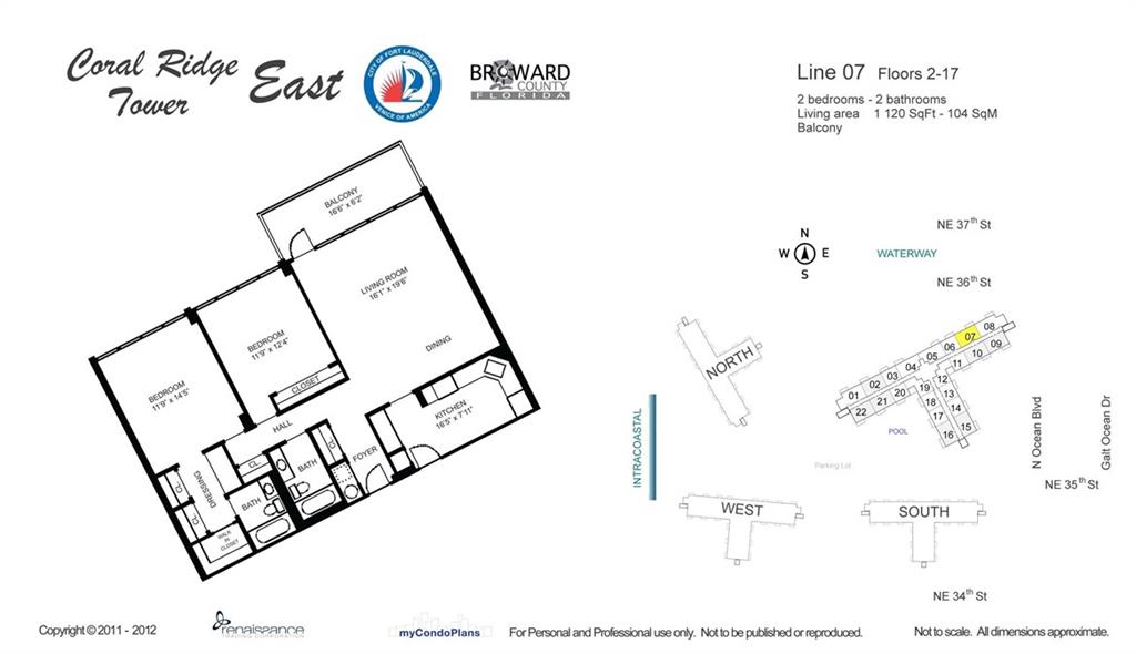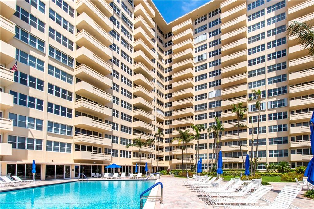 This view will knock your socks off! North West exposure with breathtaking views of the Intracoastal, Ocean, and surrounding neighborhood. Two bedroom two bathroom apartment with tile floors throughout the living spaces. Hurricane impact windows and door installed. Central Air Conditioning. Large private balcony with stunning views. Chic updated lobby and hallways. Enjoy the daily boat parade from the private clubhouse on the Intracoastal. Tropically landscaped garden area with a 30 x 60 heated pool. Located in a beautiful walking neighborhood between the Ocean and Intracoastal. Association states one buyer must be 55 plus, no pets or rentals. Coral Ridge Towers is a fantastic place to call home.
