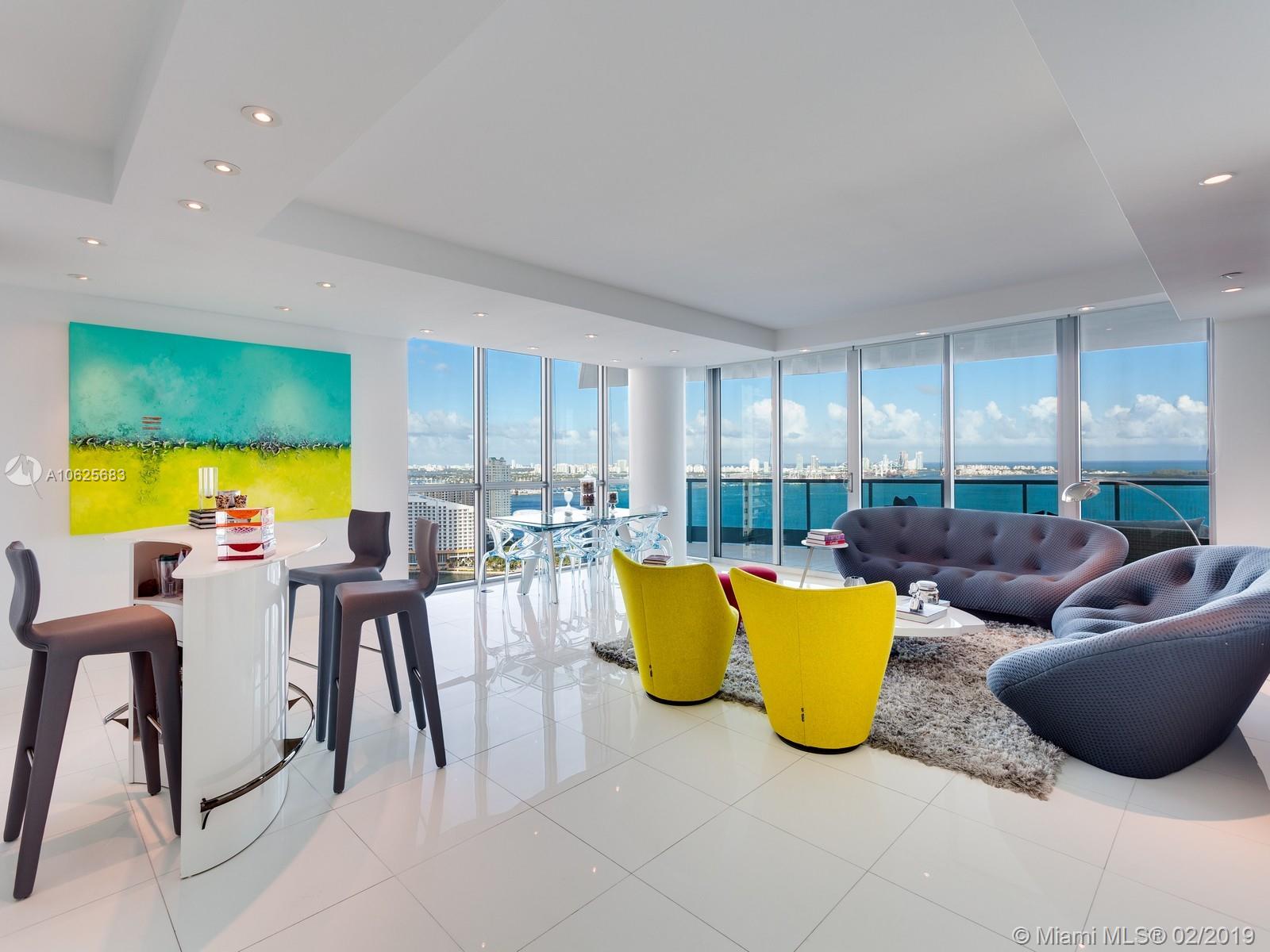 Located in the heart of downtown Miami this move-in ready unit on the 31st floor has breathtaking panoramic sunrise & sunset views over Biscayne Bay, Key Biscayne, Miami Beach, Atlantic Ocean & Miami. Open living & dining areas, family room & sleek gourmet kitchen w/top of the line appliances. Large master suite features direct terrace access & amazing master bathroom with Jacuzzi spa tub. Jade Brickell Bay 5-star amenities include 24HR concierge, guest valet, health spa, gym, Resident Club Room, waterfront pool, party room & much more. This unit is truly a must see.
