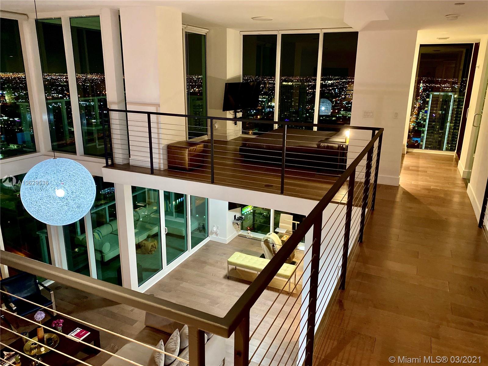 Magnificent 3-story ultra-modern penthouse has two balconies, a PRIVATE POOL with deck and breath-taking city views. Features 2 bedrooms, 2.5 baths, open kitchen, 10ft-20ft ceilings, walk-in closet. Completely redone and furnished, everything is new, including 120-inch projector with screen and foosball table. 2 valet parking spaces. Full service luxury building completed in 2007. Building amenities include gym, spa, sauna and pools. You can walk to Bayfront Park, American Arena, downtown. Truly one of the best penthouses in all of Miami.