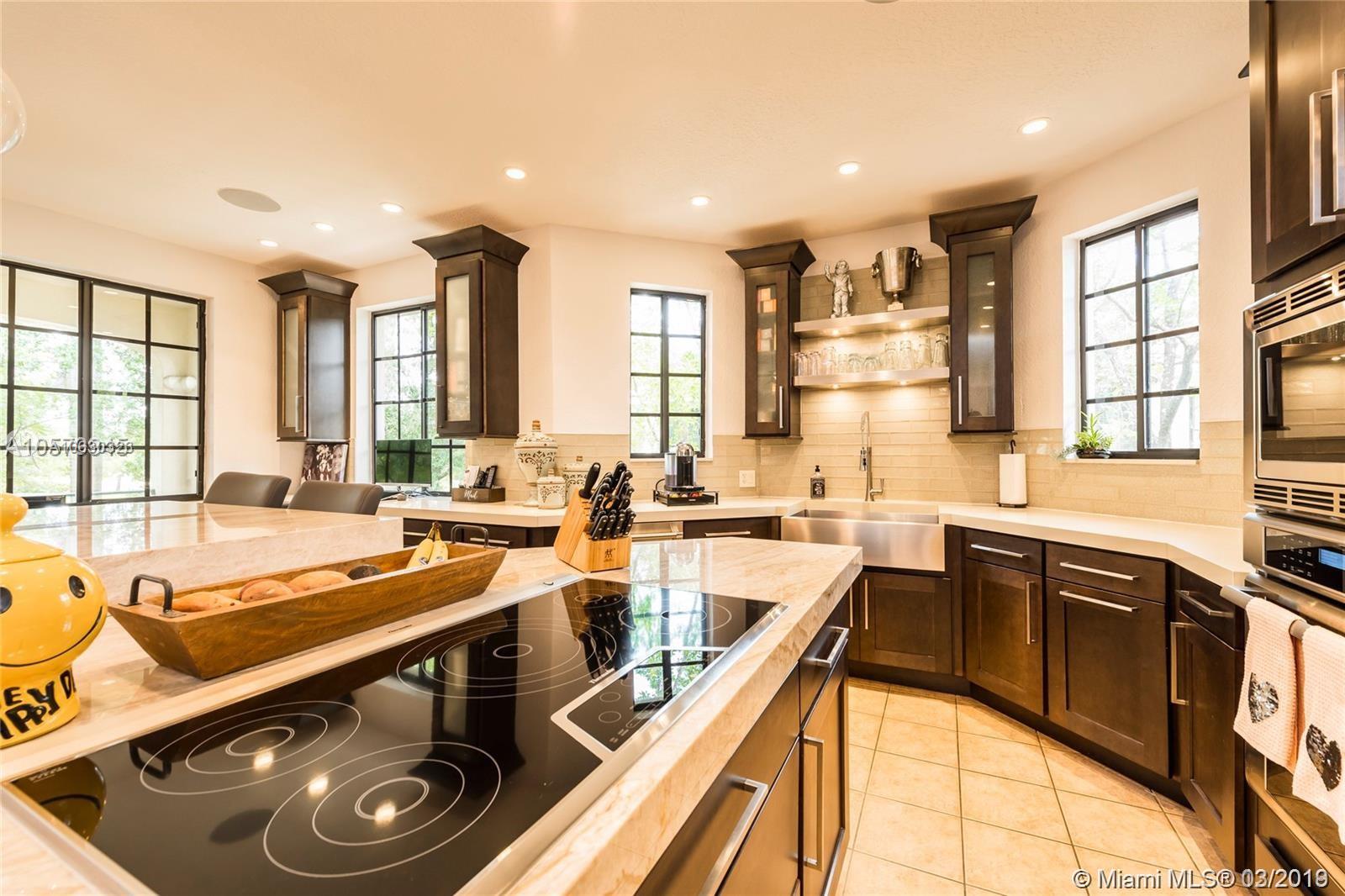 ***REDUCED!!!!***Beautiful Home! Great opportunity, perfect home for entertaining. 4 Bedrooms 2.5 Baths, Recently remodeled with a unique one-of-a-kind kitchen. Wood Cabinets, Oversized Quartzite Island, High end Thermador appliances, chefs style refrigerator and cook-top with down draft. Custom designed Bar with glass backsplash. Home wired throughout for sound system, built in entertainment system with room for a 75" TV. Master Bath remodeled featuring Marble Spa style shower. All closets custom built. Elevator Ready, best Weston location, walking distance to excellent restaurants, shopping, Town Center , A+ Schools - You've never seen anything like this!