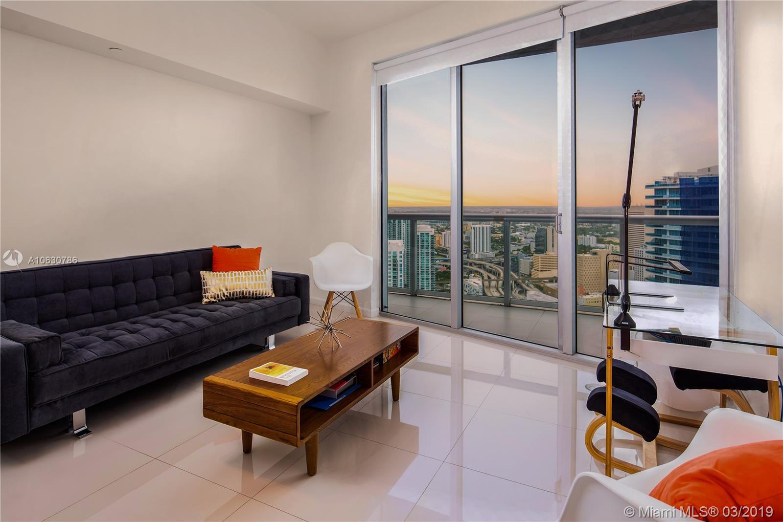 Come live in this impeccable 1 bedroom on the 52d floor. Relax and unwind after a long day to the breathtaking skyline views on your oversized balcony, with panoramic views of Miami and the Miami River. Upon entry, the long foyer will lead you through a fully equipped gourmet kitchen and into your cozy living room. The functional space is ideal for entertaining. Let your guests awe at the sunset views while enjoying a delicious meal. This unit has it all, with large walk-in closets, high ceilings, electric shades in the master bedroom, and it is located in the heart of the financial district, with convenient access to Brickell City Centre, Marry Brickell Village and the banking district.. Unit is rented until Sept 2019.