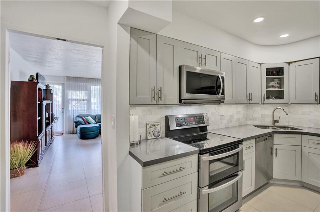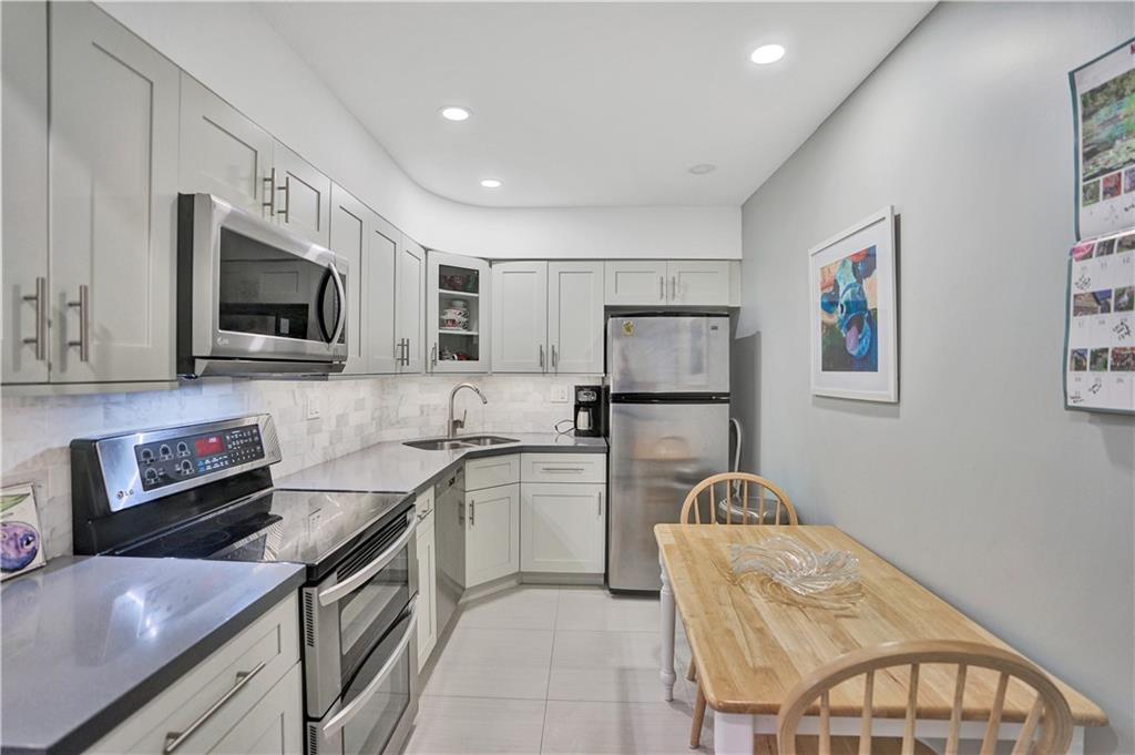 Enjoy the Atlantic Cross Breeze from this Remodeled ground floor Furnished Corner apartment. Among the Renovations are: Quartz Counter tops, Porcelain Floors, SS appliances, Two New Bathrooms and more... Also Features Semi private wing making it Elevator free....CRTE includes Private clubhouse on the Intracoastal with dock... Olympic size heated Pool, Poolside Gym, Beautiful grounds with Bocci court and more. Located at Ft. Lauderdales North Beach and Galt Ocean Mile only steps to the Beach, Shops and fine Dinning