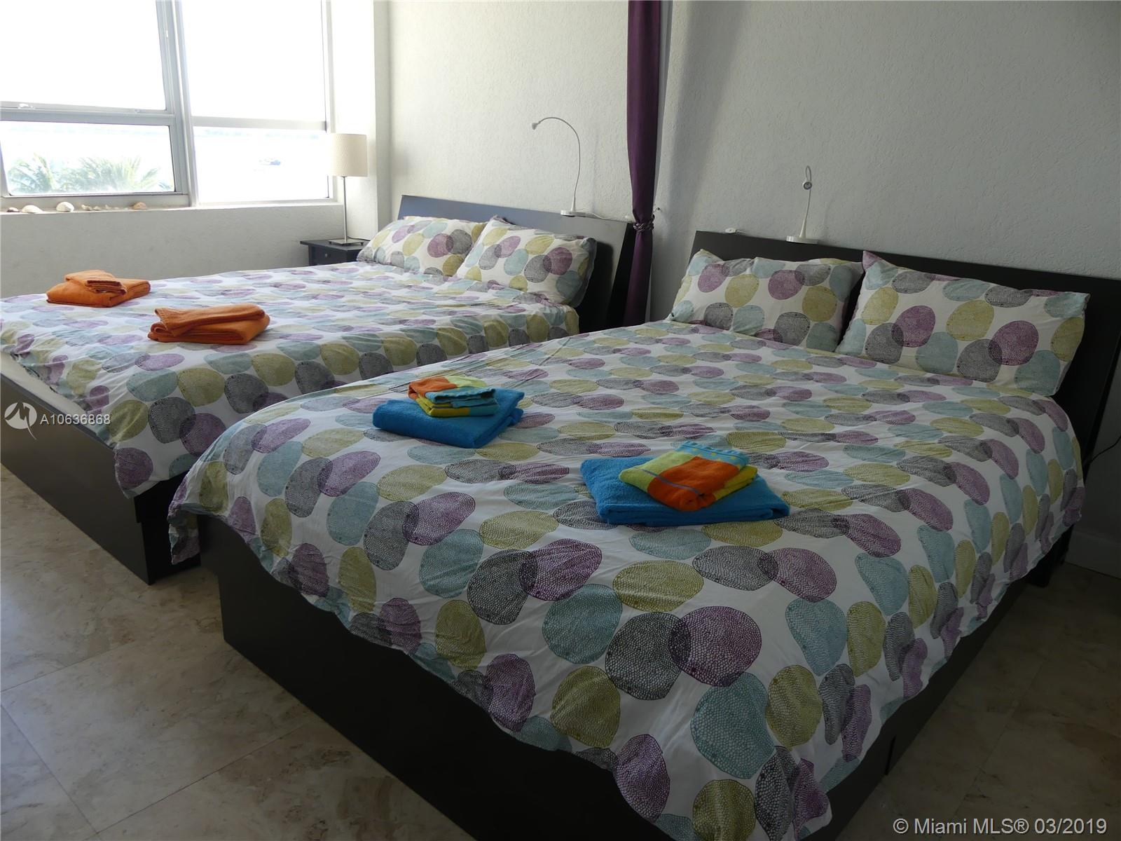 Enjoy spectacular sunsets over The Bay and Miami skyline from this turnkey upgraded 1BR. Fully furnished. Features two large Infinity Pools. Walking distance to Lincoln Road and minutes to the beach. Walking distance to Lincoln Road shops, restaurants, movie theater, the beach and more. Can be rented immediately, 30 day minimum. Income producing - Rents for 2,000 - 4,500 a month depending on season. Incredible amenities include Spa, Jacuzzi, World Class Fitness Center with yoga, spinning, boot camp classes, beach volleyball, basketball, day spa/salon, restaurant with full bar providing pool lounge service, doggy day care, on-site dry cleaners and market/liquor store. Pet Friendly. Garage in building. The unit can be sold with custom booking site.