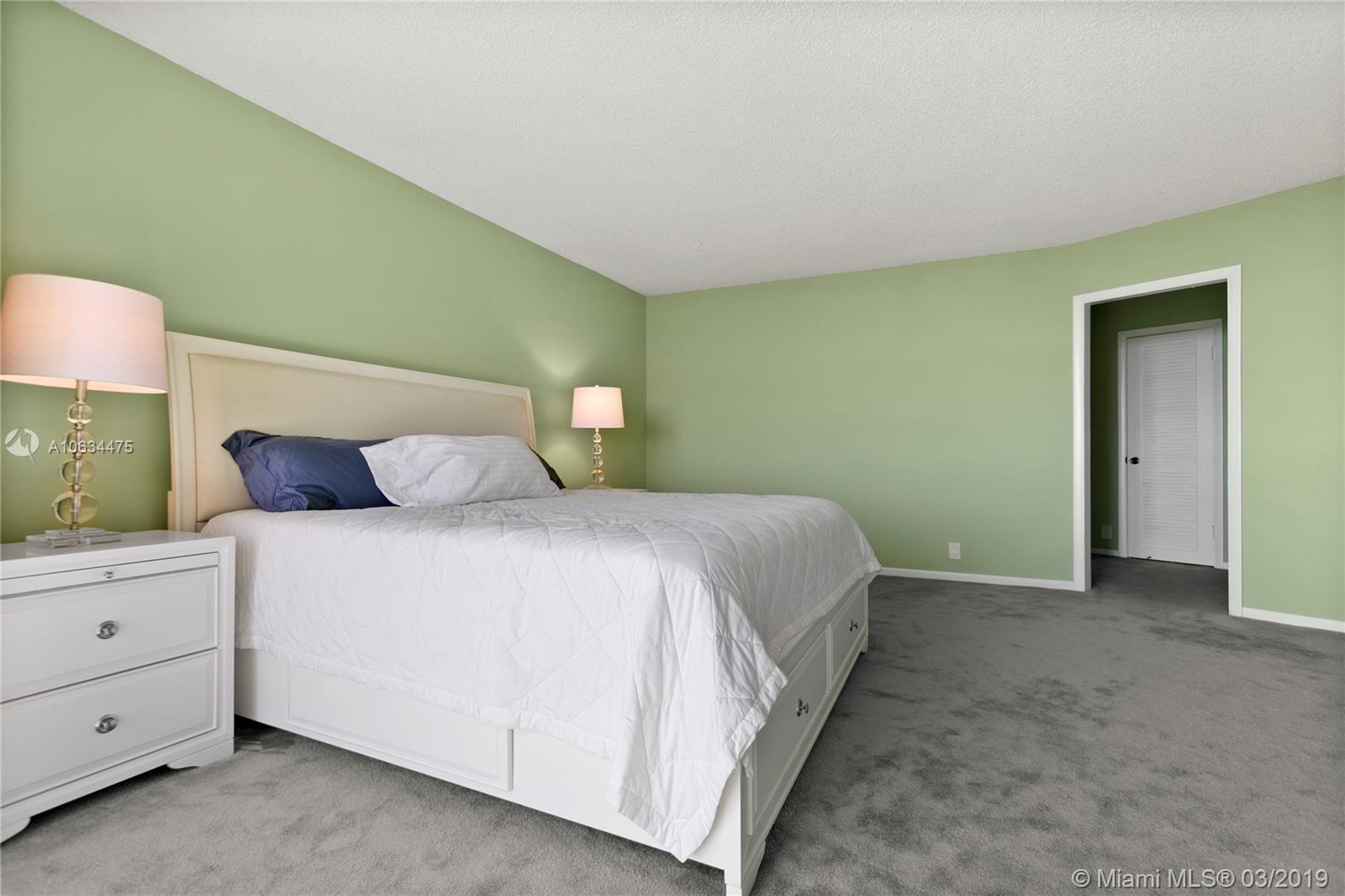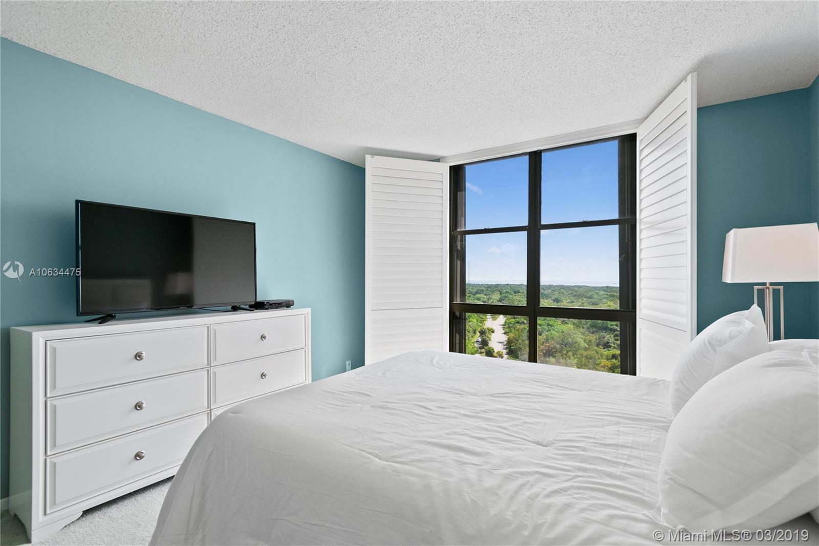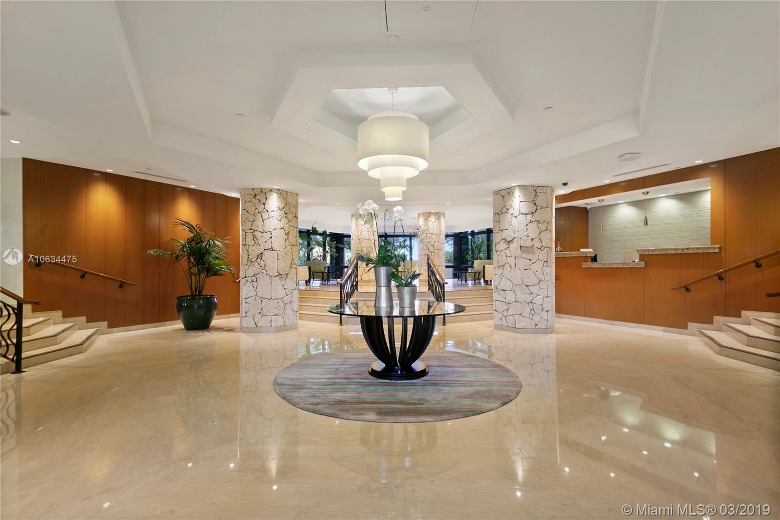 Private corner unit in exclusive location. Southeast exposure with abundance of natural light and unobstructed panoramic views of the ocean and bay. Enjoy breathtaking sunrises and sunsets from anywhere within the apartment. Renovated kitchen with stainless steel appliances. Tile throughout and carpet in the bedrooms. Premium parking space. Easy access to all facility amenities. Available to show at your convenience .