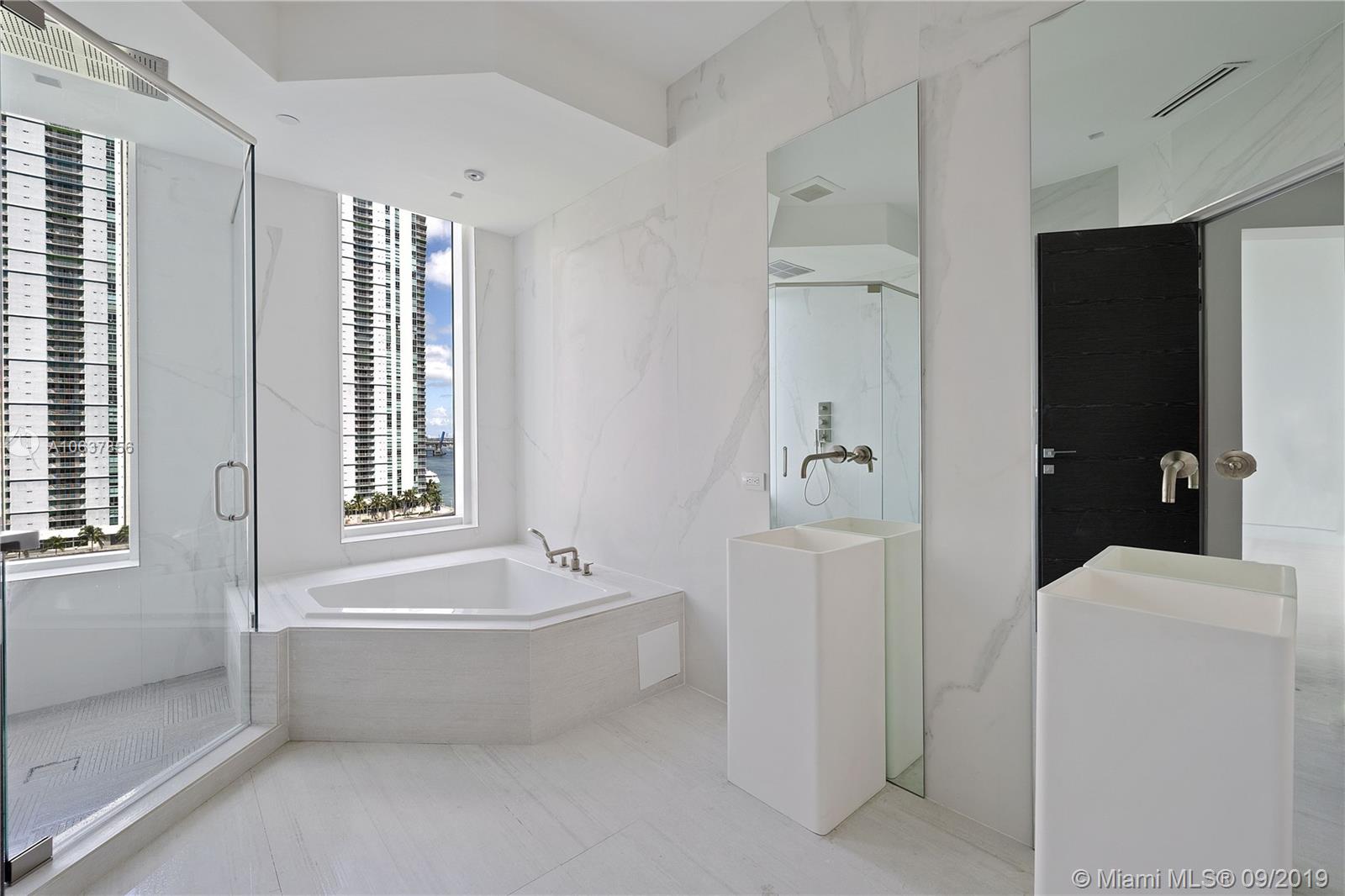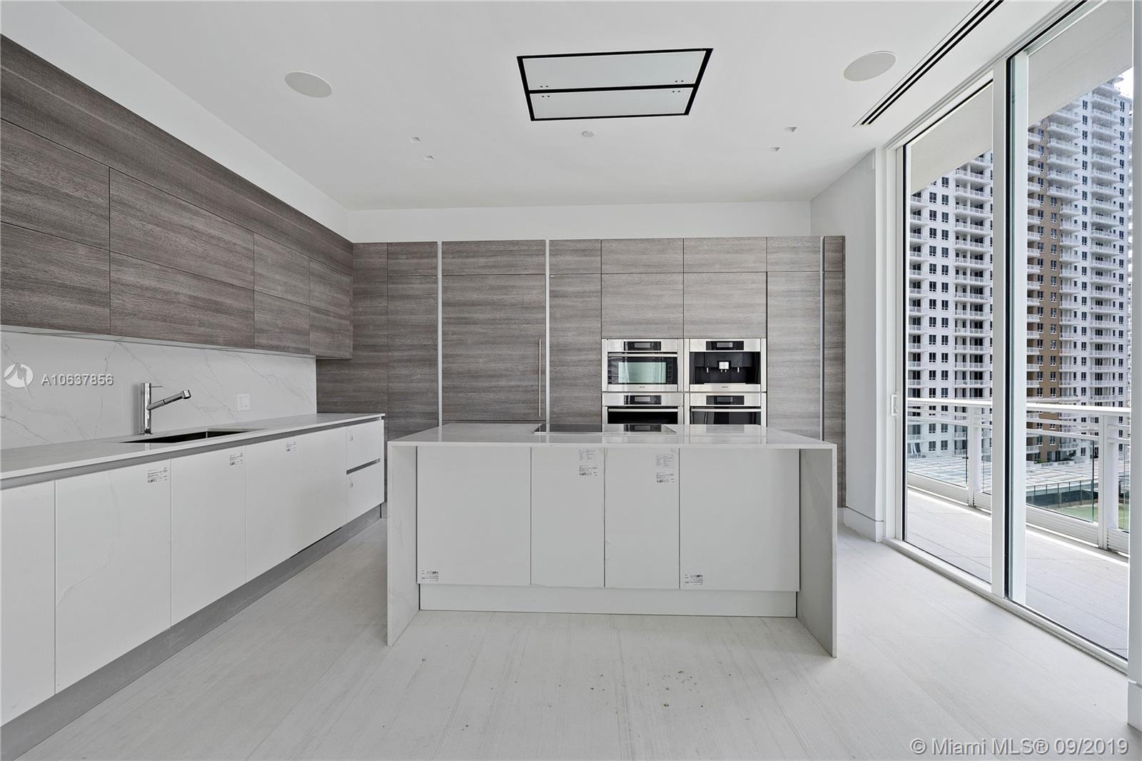 JUST REDUCE COMPLETELY RENOVATED UNIT. Private elevator foyer, Ceilings of 12 ft. Amazing Bay and Skyline views from every angle, each bedroom with impact sliding door to balcony. Elegantly finished with, contemporary , Italian cement Grilio Bianco porcelain floors throughout, including balconies. Total ceiling change Luminaires, Baseboards of Santa Lucia Brazil, Italian open cuisine Scavolini, with quartz countertops, Bath, Toilets and Bidets de Duravit, Aquabrass faucets and showers. Building in sound system, Italian Poliform closets, Secret Italian doors without Barausse Frame, shower bath Mirror, glasses indirect light throughout of the unit, storage room next to the unit and two parking spaces.
