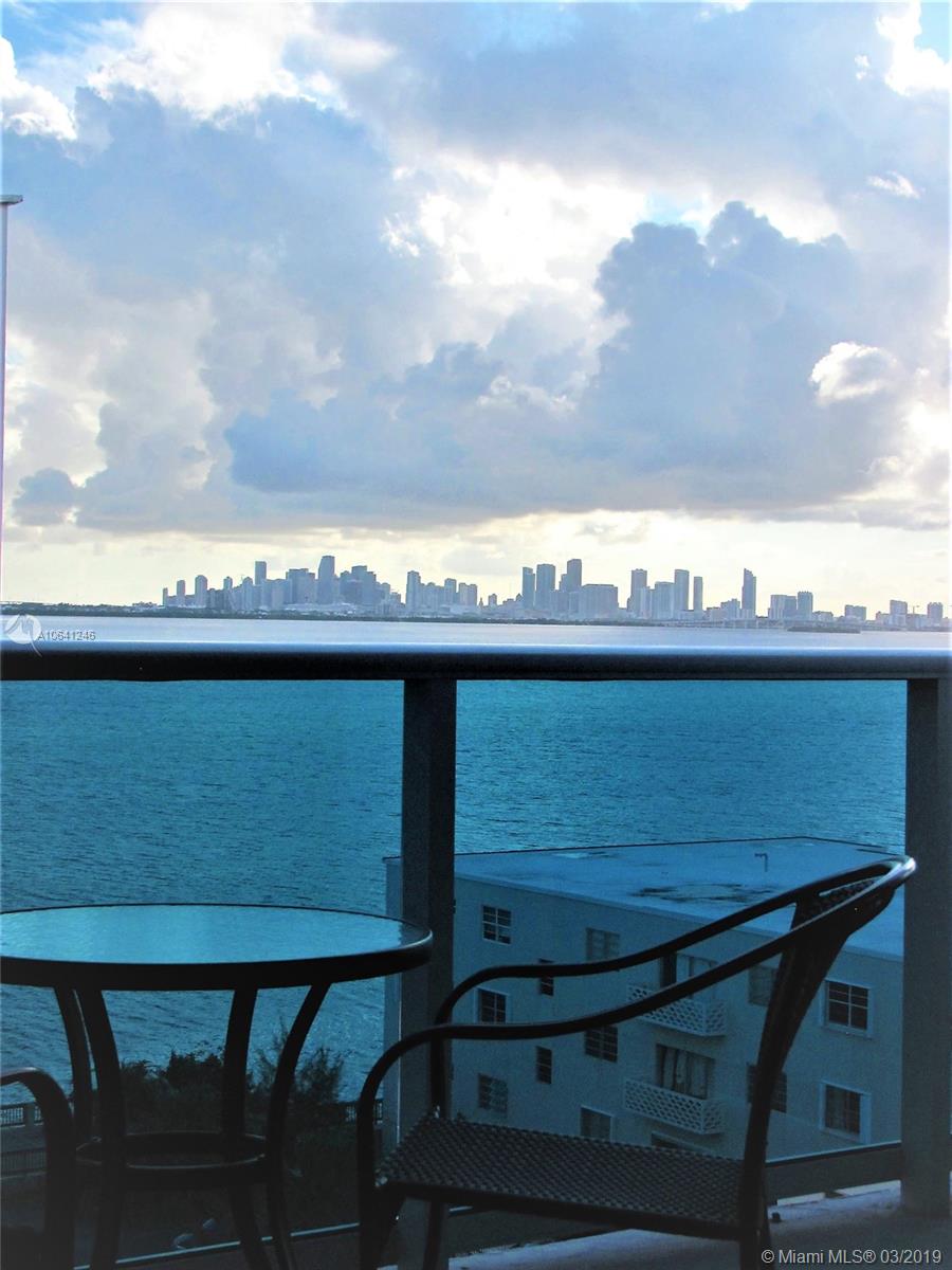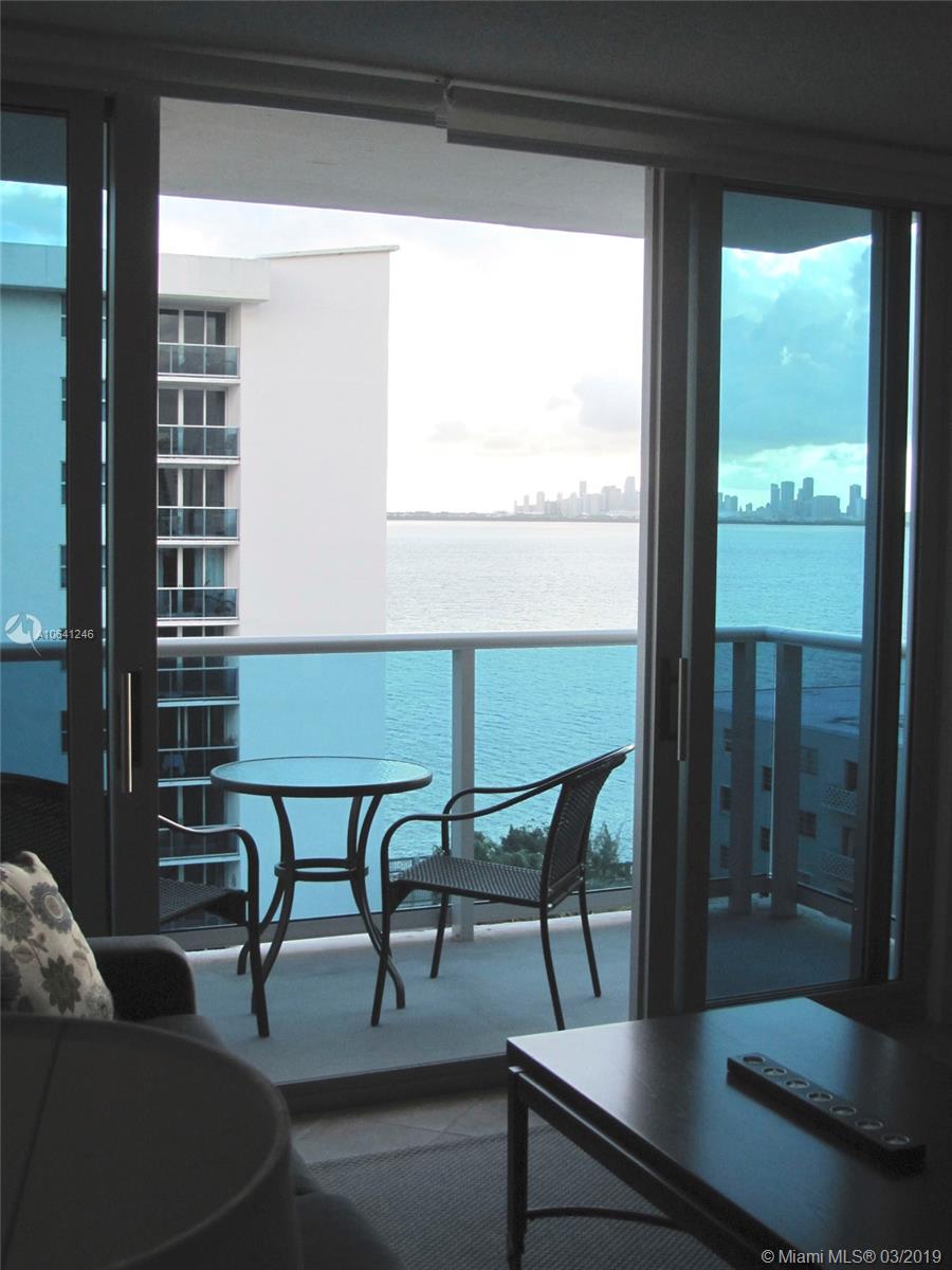 Bay and Miami skyline views from the balcony of this large updated 1 bedroom/1 bathroom unit with 825 sq.ft. under central A/C. Granite kitchen with stainless steel appliances. Great looking ceramic flooring in living area. Impact windows and sliding doors. 1 parking space. Building renewed in 2015 has pool, gym and nice boardwalk overlooking Biscayne Bay. Location is amazing in North Bay Village: minutes from downtown, beaches, airport, Aventura, etc. Restaurants and shops are minutes too.(Unit occupied; tenant paying $1550).