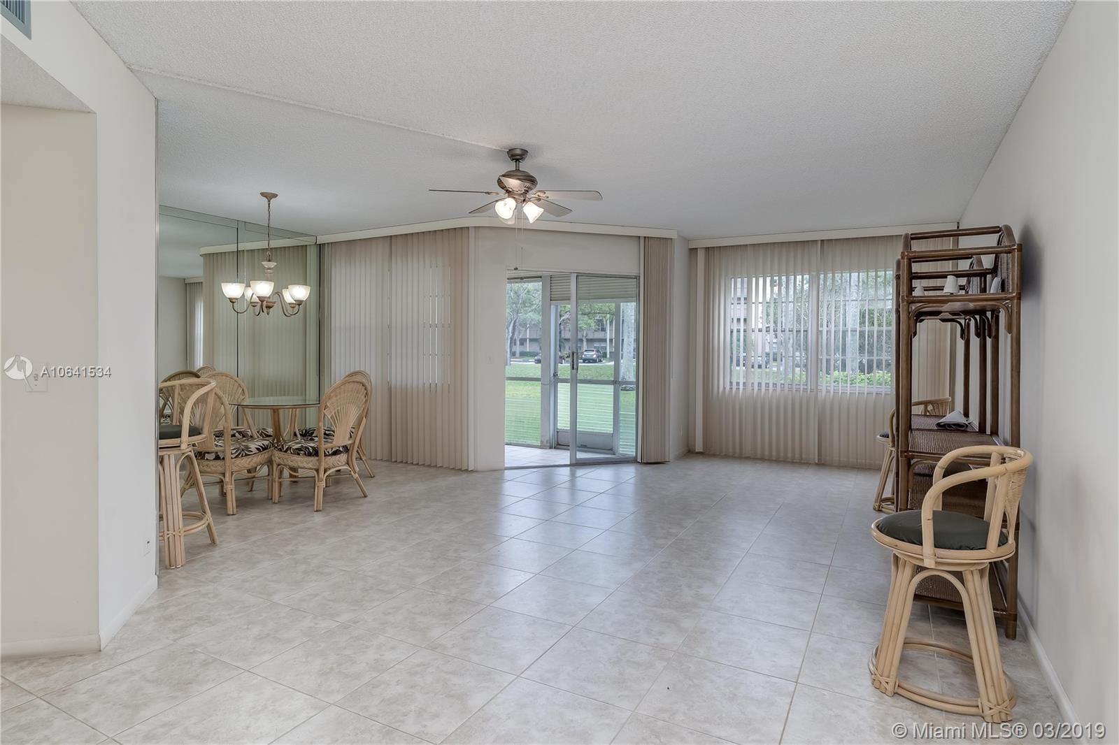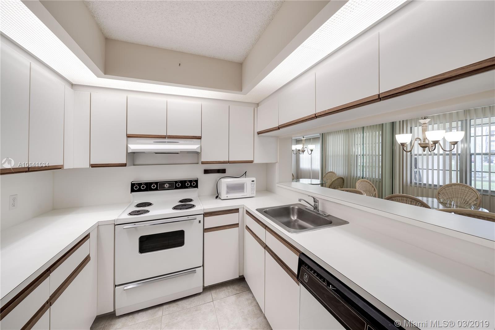 Spacious 1 bedroom 1.5 bathrooms with a serene garden view. Move in Ready. Very cozy and well kept in pristine condition. Tiled floors thought out the in entire condo. Neutral colors throughout as well. Well kept kitchen with all appliances included. 1st floor level convenient location with screened balcony with roll down shutters. The unit is equipped with a washer and dryer inside. This condo is in the most exclusive 55 plus community in Pembroke Pines. Resort style living with a million dollar clubhouse, movies,fitness center,transportation,free golf,pharmacy,cafe,24 hour security patrol and more.