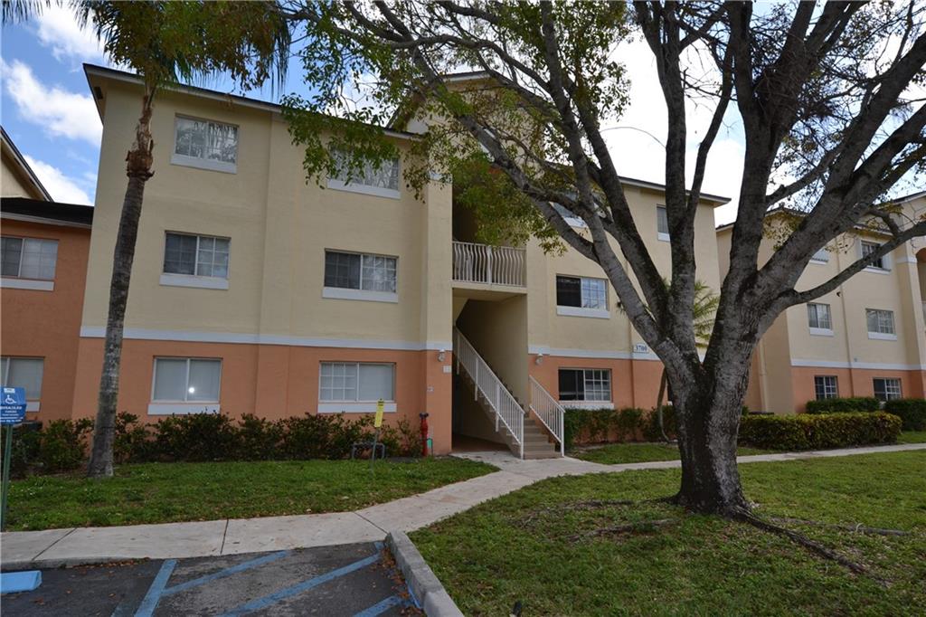 Lakewood at Emerald Hills 2/1 condo on second floor. 884 sf. Gated community, lake front clubhouse with gym and pool. Childrens play area, BBQ grills and picnic tables. Open concept kitchen with wood cabinets, snack counter, and fully equipped with all appliances and full size washer & dryer. Tiled through out living areas and bedrooms, spacious walk-in closet. 1 Pet under 25 lbs allowed. Excellent location near Hard Rock Casino, 441, Stirling Rd, Florida Turnpike.