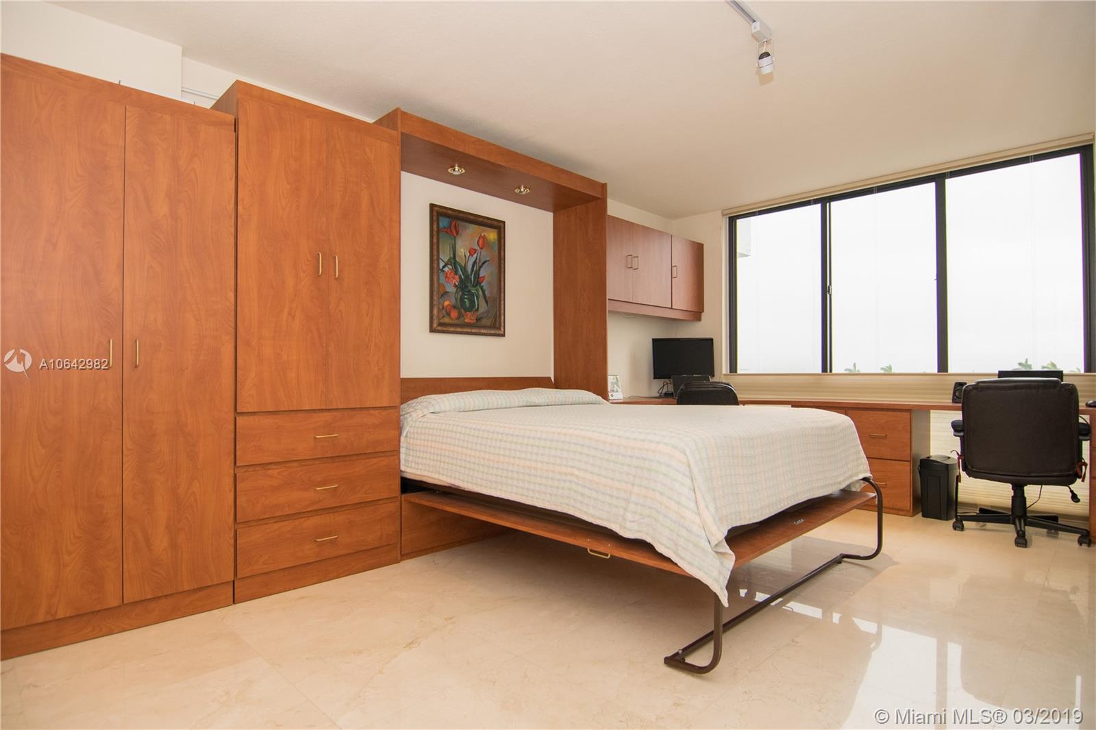 Exceptional opportunity to live on the wide Intracoastal Waterway on Hollywood Beach! Breathtaking water views from this impeccably cared for, updated condo. Featuring Travertine marble flooring, an inviting, open, smartly organized kitchen w/black granite counters, Stainless appliances. Large, bright Master suite w huge closet, the bath boasts dual sinks, walk in shower, 3 closets, private commode. The second bedroom transitions to a den/office w/Murphy Bed system featuring dual executive desks & exceptional storage! Impact windows & doors, graced w/ Top of the line Hunter Douglass window treatments.