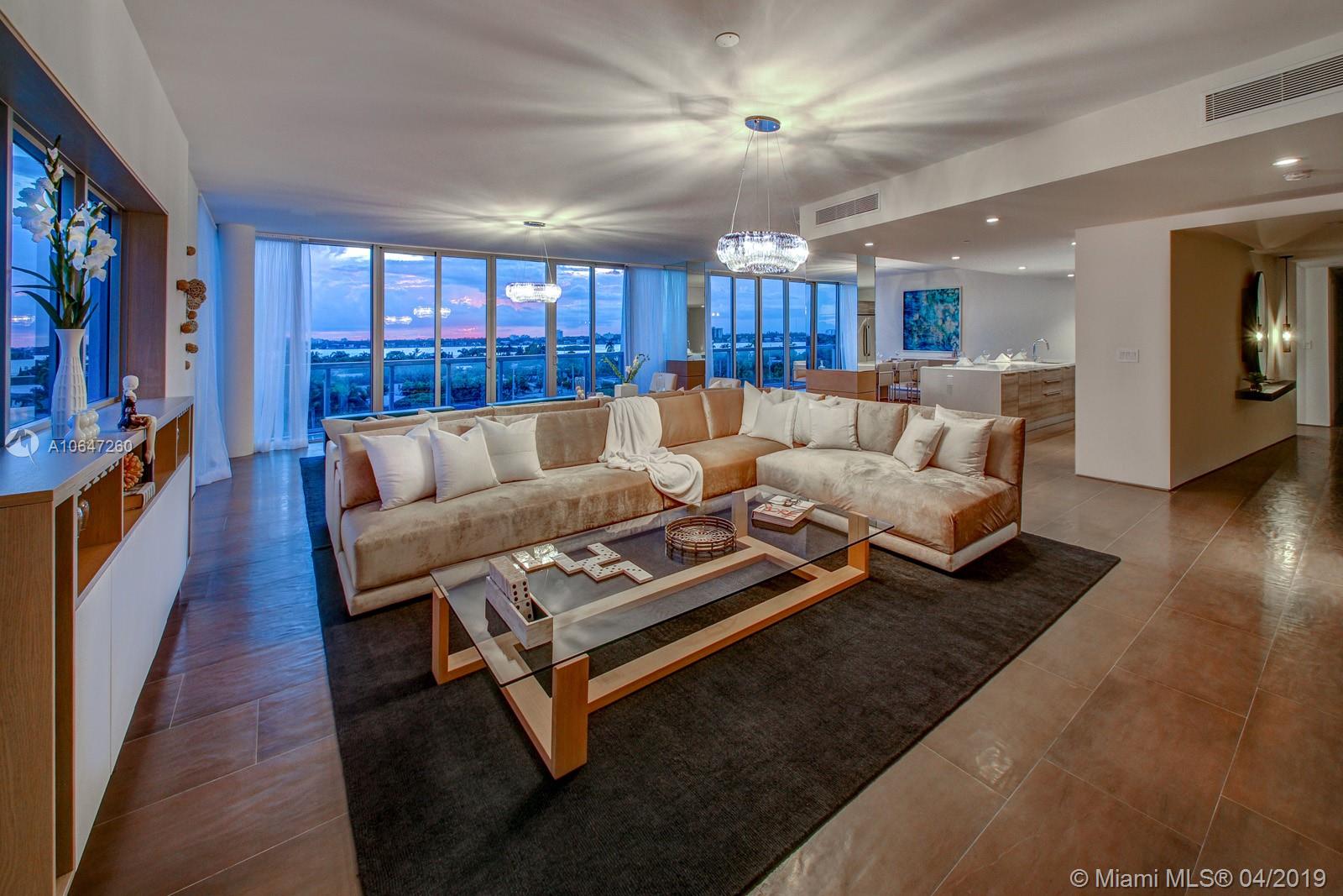 Come enjoy a beautiful sunset at this bayfront condo. One of a kind penthouse in Bay harbor island. Offers the convenience of a condo and the lifestyle of a waterfront home. Small boutique building on water. The space is 4 bedrooms, 4.5 baths with beautiful views of the city skyline facing west. Includes four parking spaces and a boat dock space. Fully designed and decorated. Ready to move in. Professionally designed By Sharon Lewis design center.