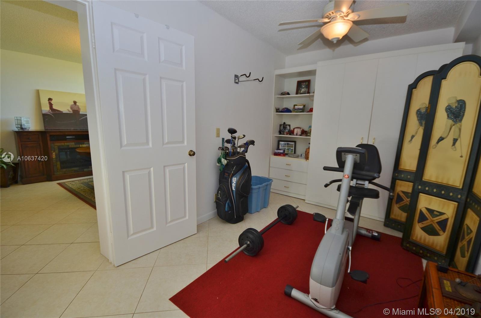 Rarely available, top floor, corner unit! Beautiful golf view with most windows upgraded to impact glass. 2 bedrooms and 2 bathrooms with spacious den. Great, clean unit with tile floors, fresh kitchen with white cabinets and newer stainless steel appliances. The unit has been freshly painted and is move-in ready. The extra room is more spacious than most other Whitehall units since the layout is a bit different and washer & dryer and behind closet doors. The den space has an attached, full-sized, Murphy bed that can stay. This unit will not last!