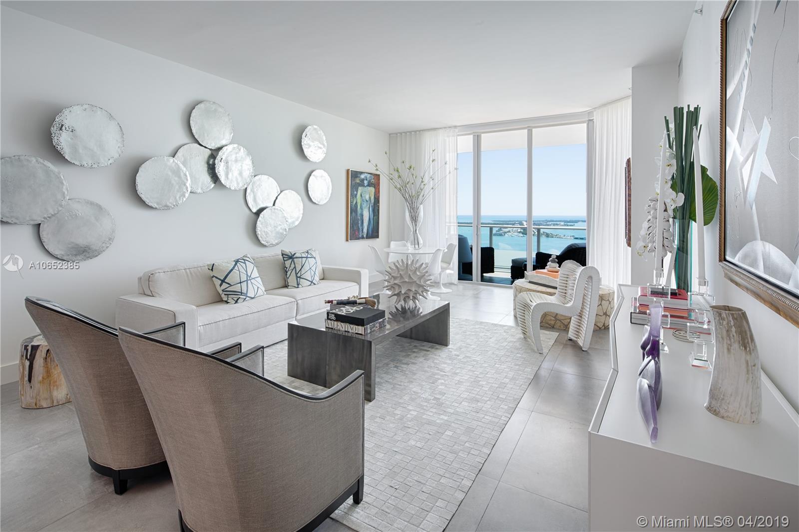 Incredible lower penthouse at Brickell House designed by European Architect. Enjoy a spacious 3 bedrooms + den and 3,5 bathrooms with panoramic views of Biscayne Bay. This 11 feet ceiling flow through penthouse has two large terraces facing the bay and the Brickell skyline to enjoy sunrises and sunsets. Five stars amenities include 24hr concierge and valet services, 10 ft theater, pool deck, spa and cabanas, the 14th floor and rooftop infinity pools and 2 spaces.