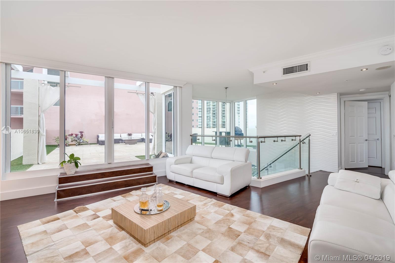 100% NEW THE MOST EXQUISITE + IMPECCABLE RENOVATION 1/2M SPENT, NOTHING ORIGINAL REMAINS. THE FINEST FINISHES. FABULOUS 2 STORY TOWER SUITE W/ 1,000 SF PRIVATE ROOF DECK TERRACE. MAGNIFICENT VIEWS OF THE OCEAN, INTRACOASTAL, MARINA & CITY. MARBLE FLOORS THROUGHOUT. THIS MARBLE IS HIGHLY UNUSUAL & CONSISTS OF 36'' SQUARES. UNIQUE HIGH VOLUME CEILINGS & 2 STORY HIGH FLOOR TO CEILING GLASS. A RARE GEM! SPLIT BEDROOM PLAN. INCLUDE STUNNING + CONTEMPORARY GLASS STAIRCASE, ELECTRIC SMART WINDOW TREATMENTS, STATE OF THE ART GOURMET KITCHEN + MIELE + ALL TOP OF THE LINE - NEW BATHROOMS, STEAM SHOWER, CLOSETS + MUCH MORE. ONE BEDROOM UPSTAIRS AND LARGE FAMILY ROOM + SEMI PRIVATE ELEVATOR FOYER, IN ADDITION TO ENTRY LEVEL TERRACE. IT IS AN ENTERTAINERS DREAM. MUST BE SEEN! A MASTERPIECE!