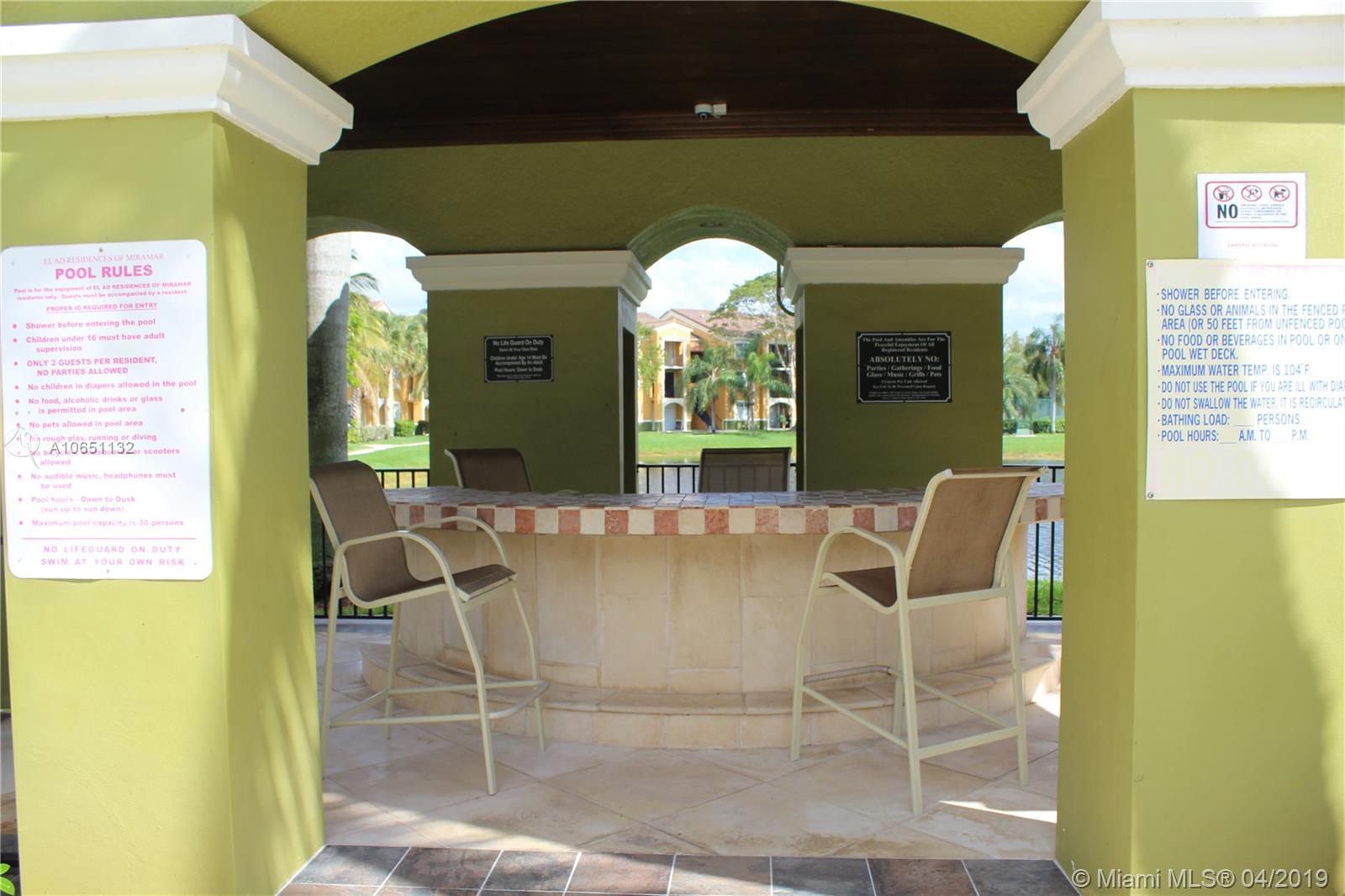 Lovely luxury 3 bedroom 2 bath unit located The Residences at Miramar.This first floor Unit features tile floor through out, granite kitchen counter tops and bathrooms ,split floor plan, nice size rooms, first floor unit, washer and dryer in unit, closet to community pool ,clubhouse and gym. A MUST SEE!