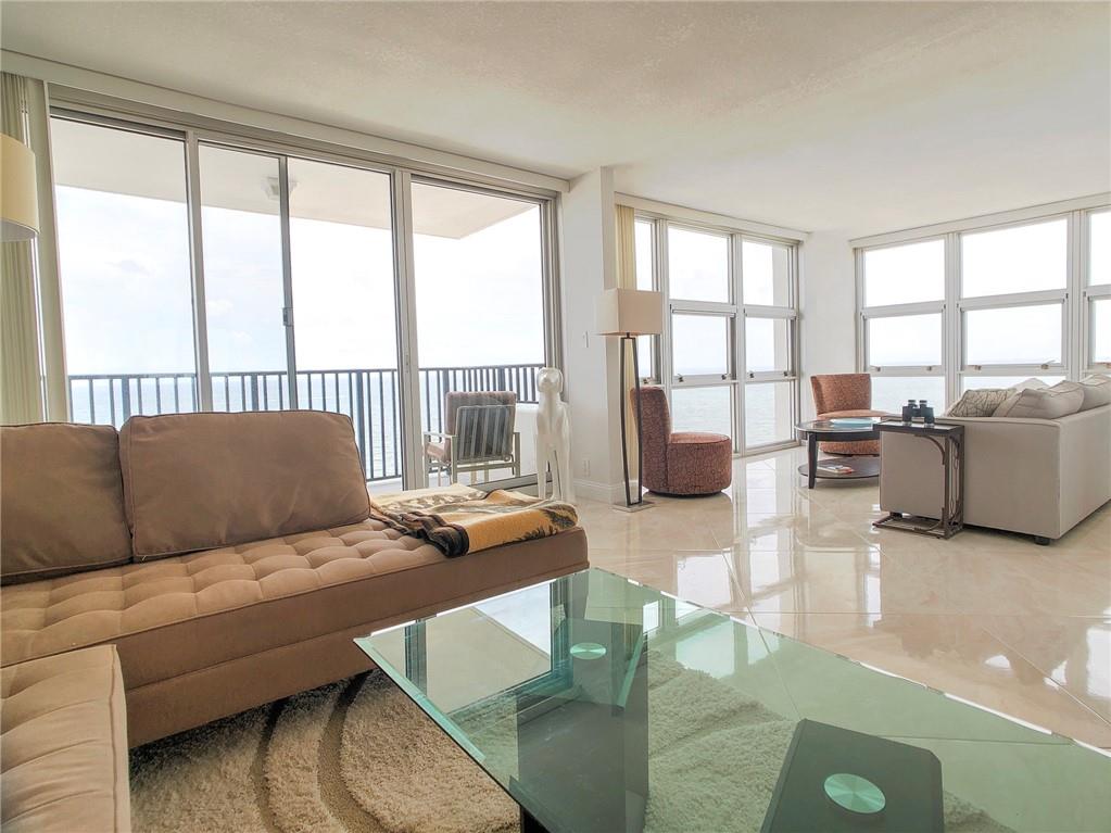 Spectacular east and south direct ocean views from this high Southeat corner. Direct ocean views and south shoreline views to port everglades. All rooms with unbelievable ocean views. Updated kitchen and 32inch flooring throughout. An ocean lovers paradise. 2nd bedroom open to living area 2heated pools, tennis and additional storage area. 1 garage space with 2nd for purchase. Seldom available unit with these incredible oceanfront views. On site management and 24 hr security. Walk to new fishing pier and new shops and eateries. Ocean! Ocean! Ocean! Like living on a cruise ship all year long.