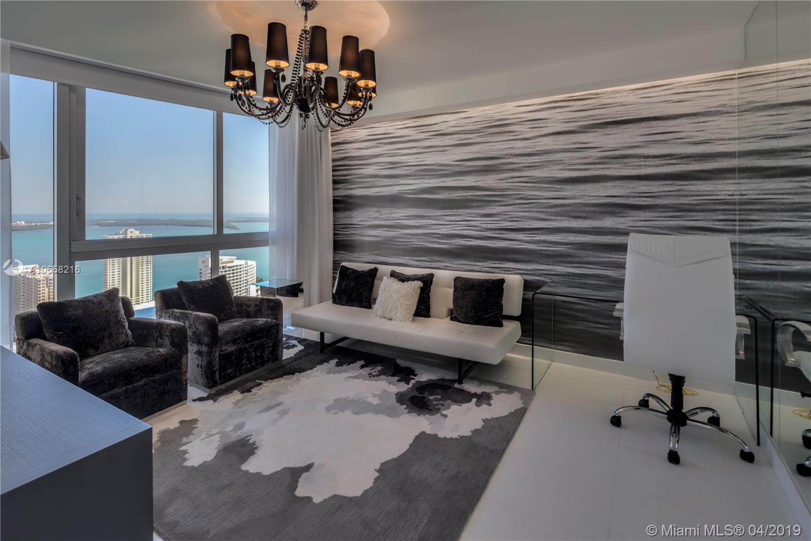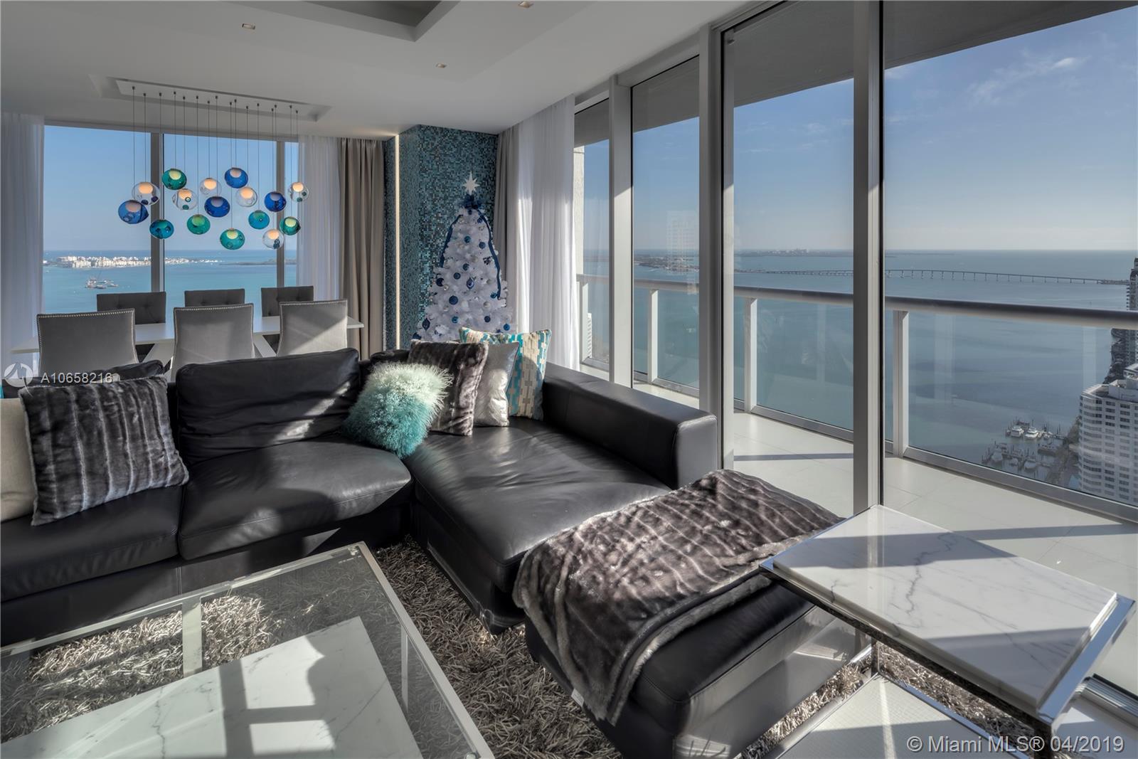 A modern and meticulously upgraded waterfront residence with unique designer finishes. Top-of-the-line details throughout including Carrara marble counters, custom LED lighting, mosaic tiling and marble walls, built-in sound system, master bath with rainfall shower and soaking tub. Desirable corner unit with unobstructed bay views and spacious balconies. Includes two parking spaces. Icon Brickell offers full-service amenities, spa and newly renovated pool deck - close to Brickell City Centre.
