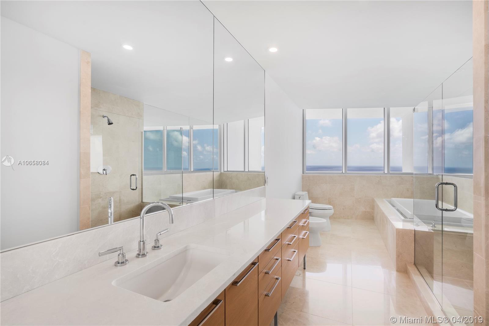Welcome to Jade Beach! Looking for space & luxury? Look no further! A private elevator directs you to a foyer giving w/access to this magnificent, 2-level home w/4,141SF offering most amazing, direct panoramic views of ocean & city w/flow-through layout. Enjoy magical sunrises & golden sunsets through lg 22” impact glass windows/doors. The kitchen is spacious w/cooking island, Italian cabinets & top of the line appliances, maid's quarters off the kitchen & laundry room. All bedrooms have electric blackout curtains, full size bathrooms & lg built-in closets. Amenities: beach service, ocean pool w/attendant, sunset pool, business center, social rooms, children’s play room, bar/cafe, spa, state of the art gym, 2assigned parking spaces & storage unit. This unit can also be sold with # 4305.