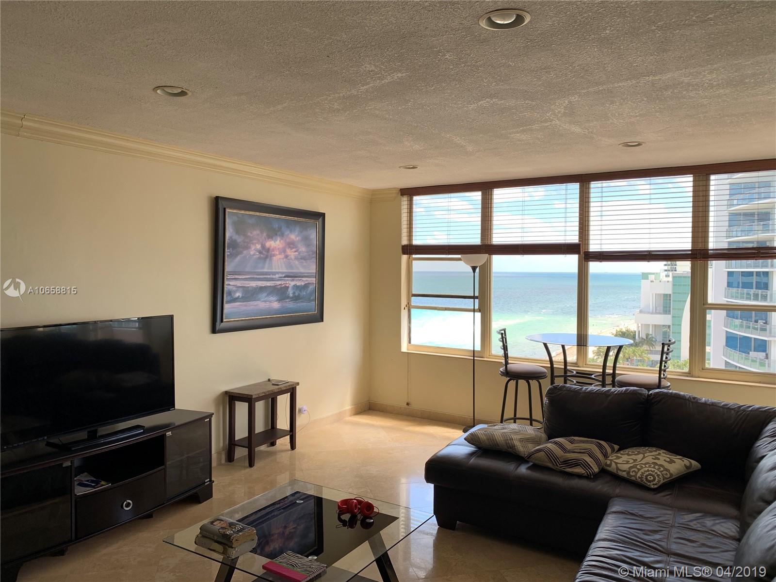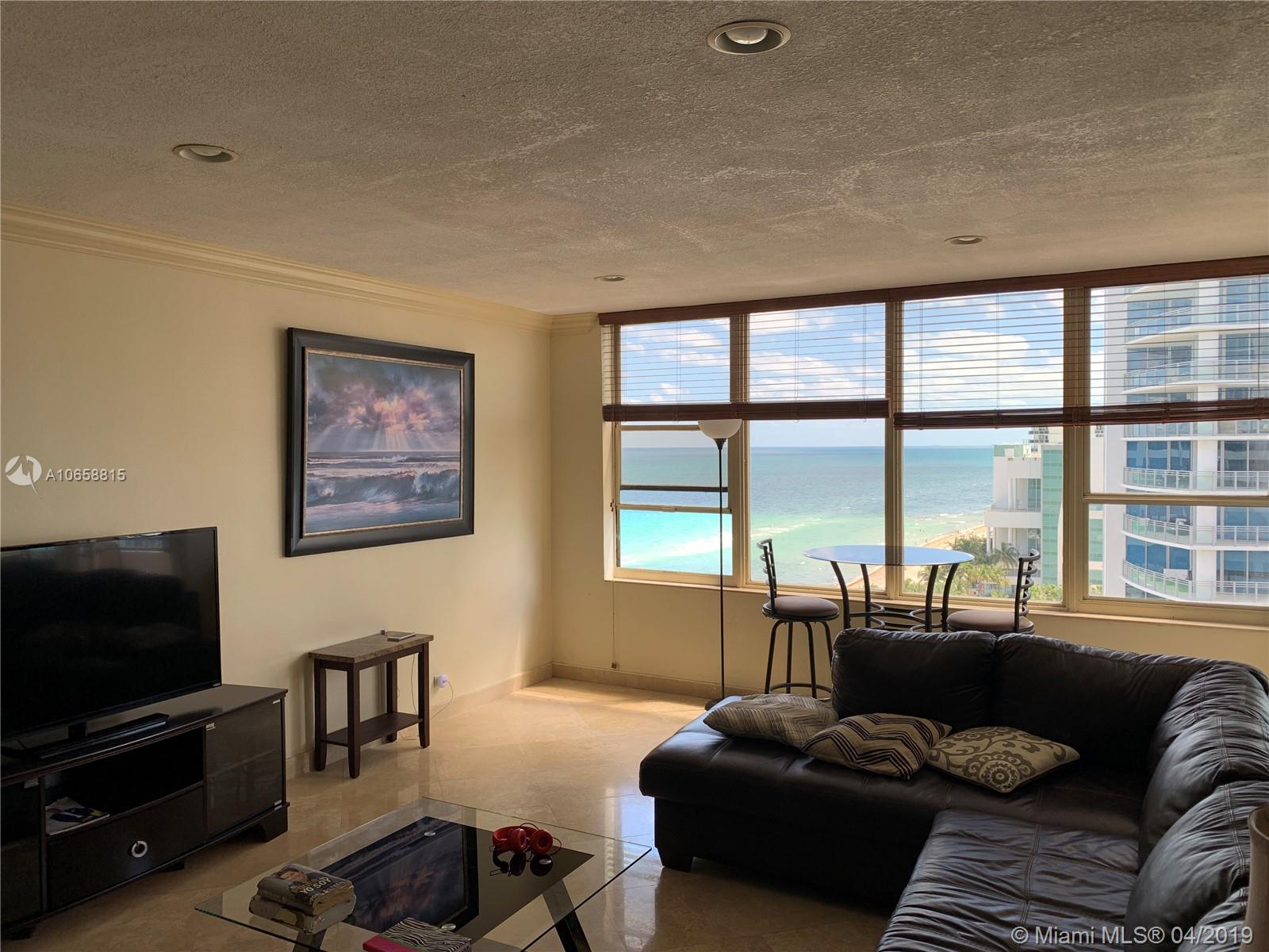 Very nice furnished and large 1 bedroom at Alexander towers in Hollywood. Amazing ocean view with direct access to de beach! Enjoy this beautiful apartment with 1 large suite bedroom and a half bathroom. Unit located in the last floor of the building, pent house view! PH15 or 1515.
