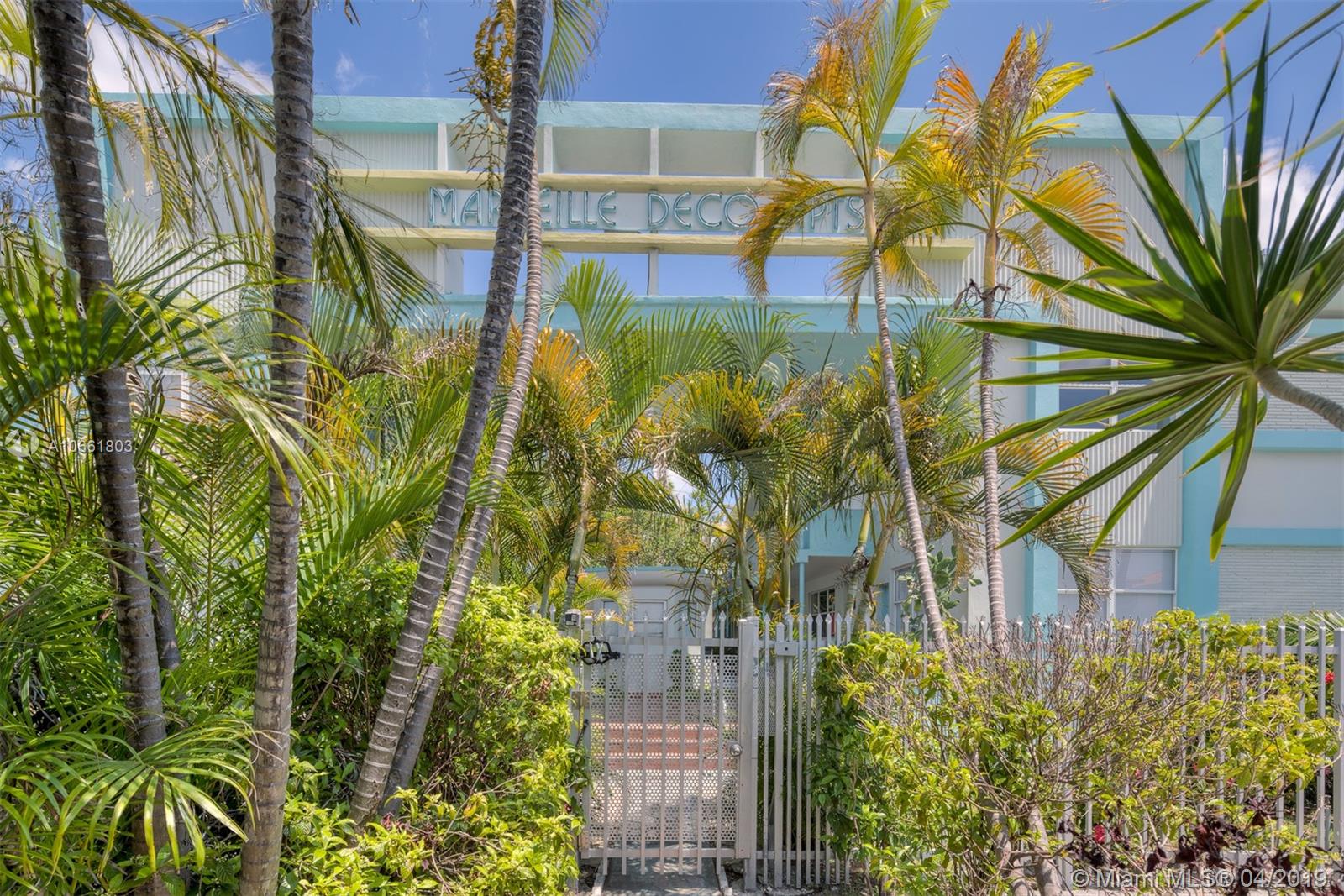 Spacious, meticulously maintained, and rarely available corner 2 bed/2 bath + DEN unit in desirable Marseilles Deco Condo. TONS of natural light with east, west & north exposures, and beautiful canal and pool area view. Unit features refinished dade county pine hardwood floors, stainless steel appliances (2016), gas stove, full-size Whirlpool Duet washer/dryer (2016), tankless water heater, and accordion hurricane shutters. This historic MIMO condo is pet friendly and features 2 acres of lush landscaping, furnished pool deck, 2 large BBQ areas, bike storage, fully gated secured entrance, free street parking or first come/first serve on-site parking. Walk to Normandy Fountain, shops, restaurants and the Beach! Kayak, paddle-board, or take a boat from the property out to the bay or ocean!