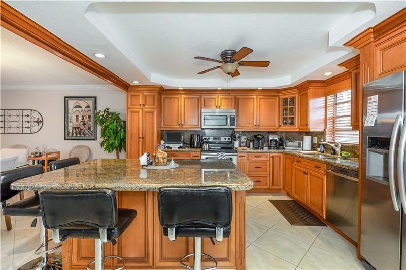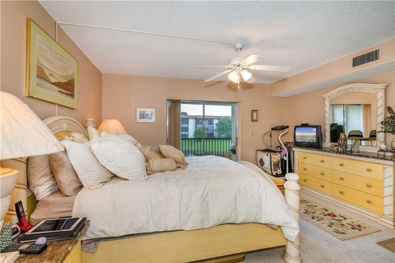 GORGEOUS PHASE 6 unobstructed large lake/fountain & golf views from almost every room. Very spacious 2BR/2BA 2nd floor. Absolutely nicest, wide open kitchen area w/ huge granite-top center island seating and magnificent elegant details. Huge Terrace. Updated bathrooms. Full size Washer/Dryer in place. Recreation Lease PAID IN FULL! TOTAL appliance service contract.NEW HOT WATER HEATER! Two 18 hole golf courses (PGA & Par 3)FREE (except cart fees), 14 tennis courts, 7 heated pools, theater, fitness center, pool & ping pong tables, restaurant, courtesy bus, sauna, library, pickle ball courts, 24 hour guard gated security. 55+ HOPA Community. THIS IS A MUST SEE! WORTH EVERY PENNY AND THEN SOME!