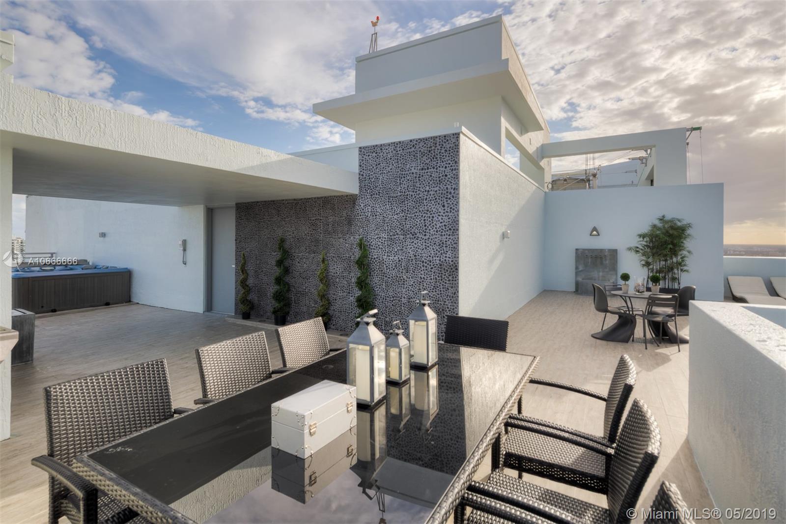 Most luxurious and spacious fully furnished 3-story Penthouse with private rooftop, 2418 interior + 2173 outdoor = 4591 total sq/ft per developer. Premium corner with breathtaking 270 degree views of South Beach, Coral Gables and Downtown Miami. This corner Penthouse was completely renovated with top of the line finishes throughout. Kitchen features Viking and Bosch appliances. Rooftop includes Sundance Spa, shower, ss barbecue, wood porcelain, pebble rock wall, custom lighting and Zinc fountains. Only 2 blocks to Brickell City Centre.