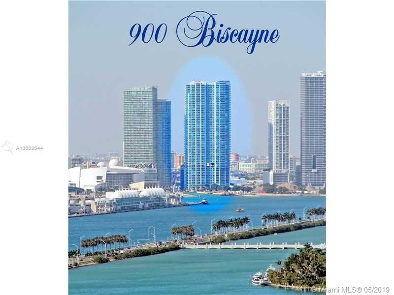 Amazing spacious one bedroom with two full bathrooms 900 Biscayne, the most prestigious building at the edge of Biscayne Bay. Stunning views in all directions. Unit features marble floors throughout and top of the line finishes. Building offers state of the art amenities such as gym, spa, sauna, Jacuzzi, business rooms, short distance to museums, performing arts, American Airlines Arena and much more.