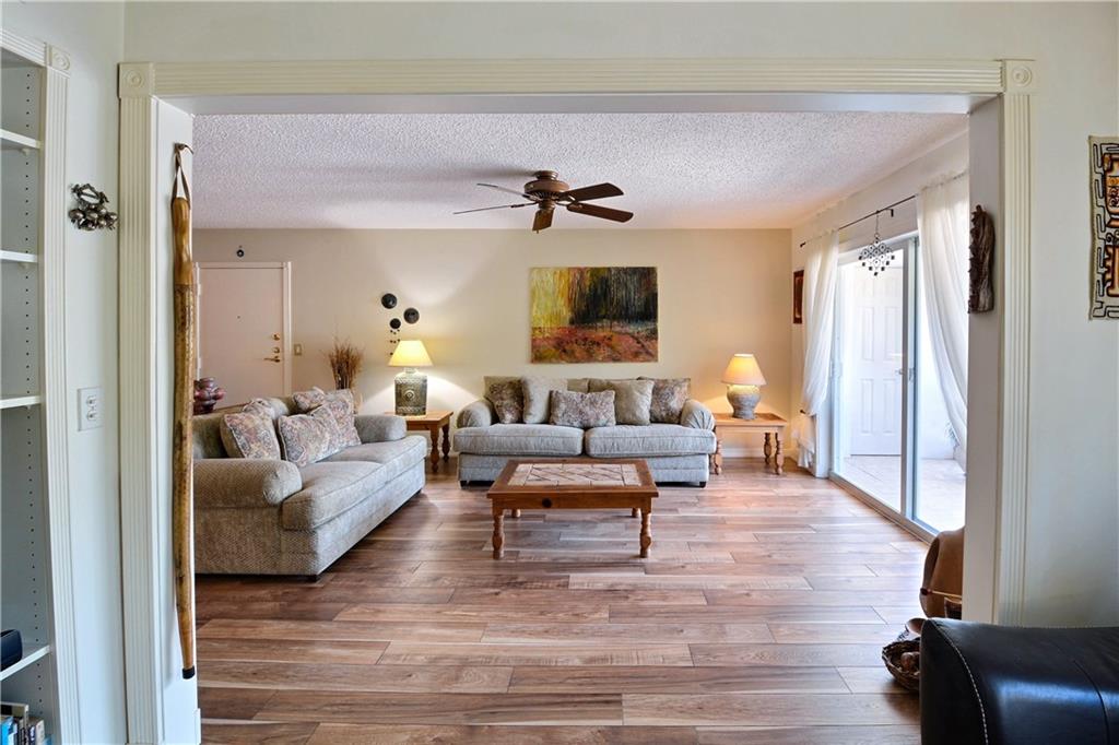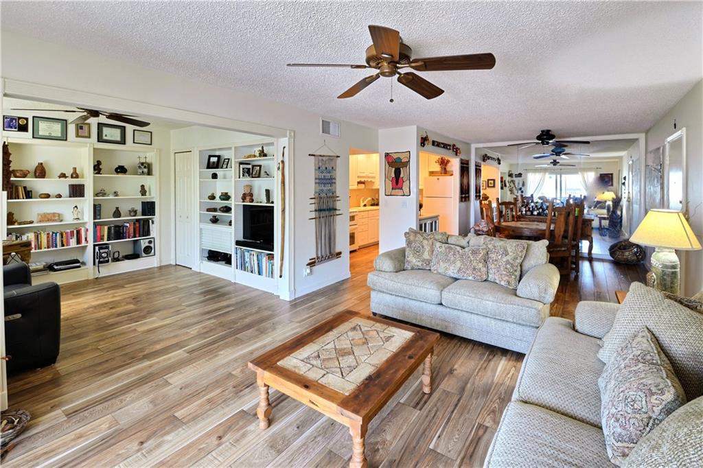 Exceptional Updates throughout this bright open floor plan, ideal for today's lifestyle. The gourmet kitchen opens onto the dining area & large great room. Sliding glass doors afford access to a screened in balcony with waterway views & extra storage. The master suite offers tranquil waterway views & is large enough for a sitting area & boasts a lavish custom bathroom. The 2nd bedroom is currently used as a den/office. Washer/Dryer hookup is available. Dockage available thru association. Sq Ft from bcpa believed accurate