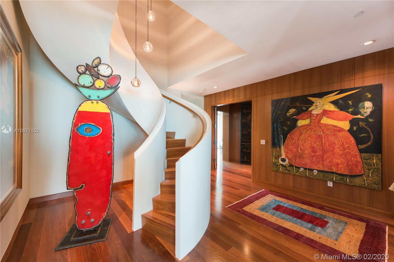 Elegant 2 story 7,061 sq ft Penthouse with expansive 5,216 total sq ft terraces and soaring ceilings - providing unrivaled panoramic views of Marinas, Biscayne Bay and the City. Private elevator foyer and grand Nautilus shaped stairs introduce rare private Roof Top Terrace complete with barbecue area and full air conditioned bar area. Designed by architect Jenifer Briley. Master Suite is complimented by 2 sitting rooms, double dressing area and massive bath. Gourmet kitchen includes European appliances, oversized island and multiple dining areas. This luxurious 4 bed, 3 full and 2 half baths Penthouse boasts additional library, den, formal living room and family room. 4 parking spaces included in sale. Located in the best full-service building in Coconut Grove – Grovenor House.