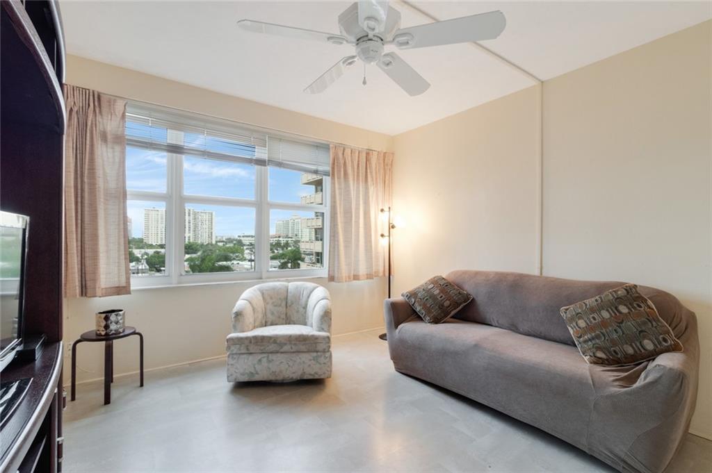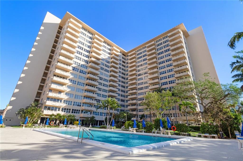 Fantastic, Southeast facing 2 bedroom, 2 bath unit in the best building in Coral Ridge Towers! Enjoy views of both the ocean and the skyline of Fort Lauderdale beach from your balcony. Unit features an open floorplan with tile floors throughout, an expansive dinning area, lovely window treatments, great storage and hurricane impact windows and doors. The bedrooms are very large and offer plenty of room for a king size bed and a sitting area. The Furniture in the unit is negotiable. Kitchen features a breakfast area with lot of cabinetry and has been well maintained. The complex offers 24 hour security, resort style amenities including resort style pool, fitness center, card rooms and a beautiful formal lobby.