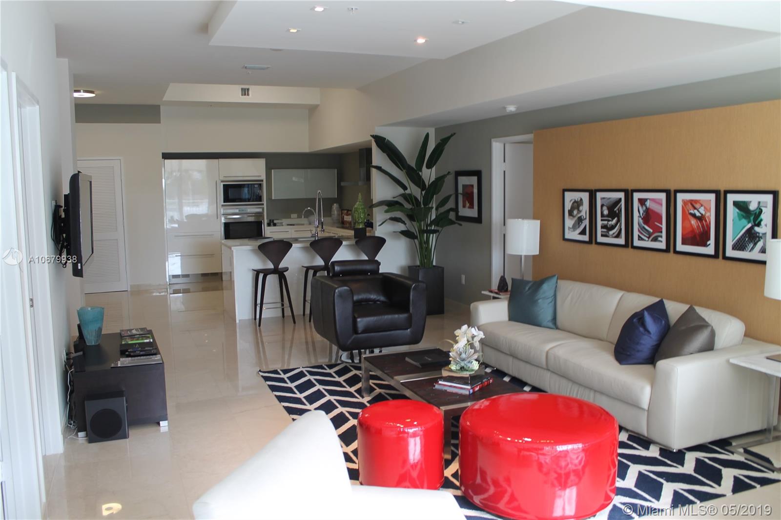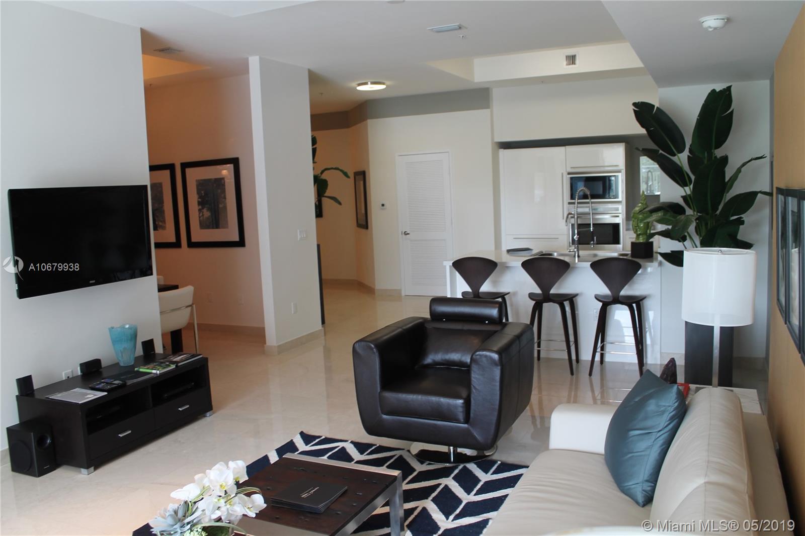 A MUST SEE UNIT at St. Tropez - Beautiful 2 bed + 2 bath + Den Townhome. Model unit professionally decorated and fully furnished. featuring oversized living spaces and amazing canal/partial ocean views. Arrive by car by each in private community dock. This resort style complex features a state of the art gym, Versace themed party room, private library and private beach club. The unit features top of the line appliances. Beach access, concierge, valet. Grade A school district. 1 assigned space + valet.