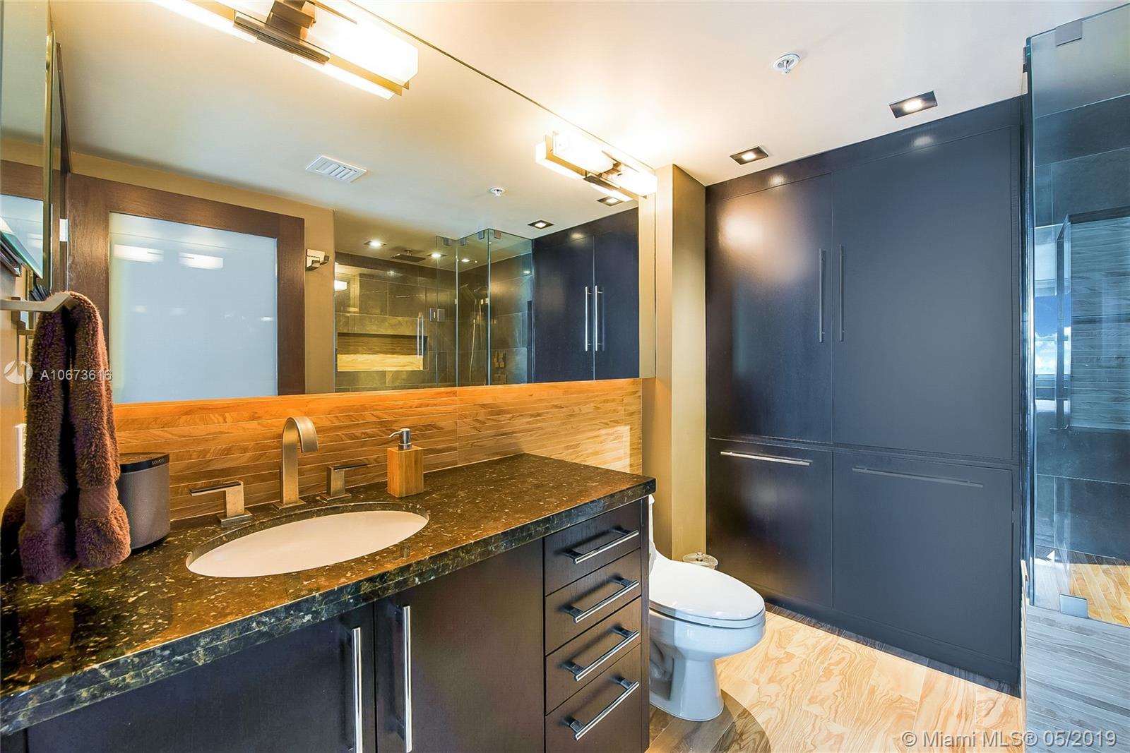 SIGNIFICANTLY REDUCED! Gorgeous water views from every room of this luxury waterfront apartment at the Floridian in Miami Beach. Meticulously remodeled throughout, it features the perfect split floorplan layout with beautiful marble flooring, wood cabinetry, granite counters, S/S appliances, renovated bathrooms & closets, custom track lighting, brick facade, motorized blinds, sound system, W/D, covered parking & waterfront balcony with views you need to see to believe! Premium waterfront location steps to all South Beach has to offer & convenient access to Miami/Brickell via 395 to I-95. Beautifully renovated lobby & hallways, waterfront pool with cabana serving food/drinks, tennis, basketball, gym, spa, conv store, valet, front desk & 24hr security. Perfect for owner-living or investment!