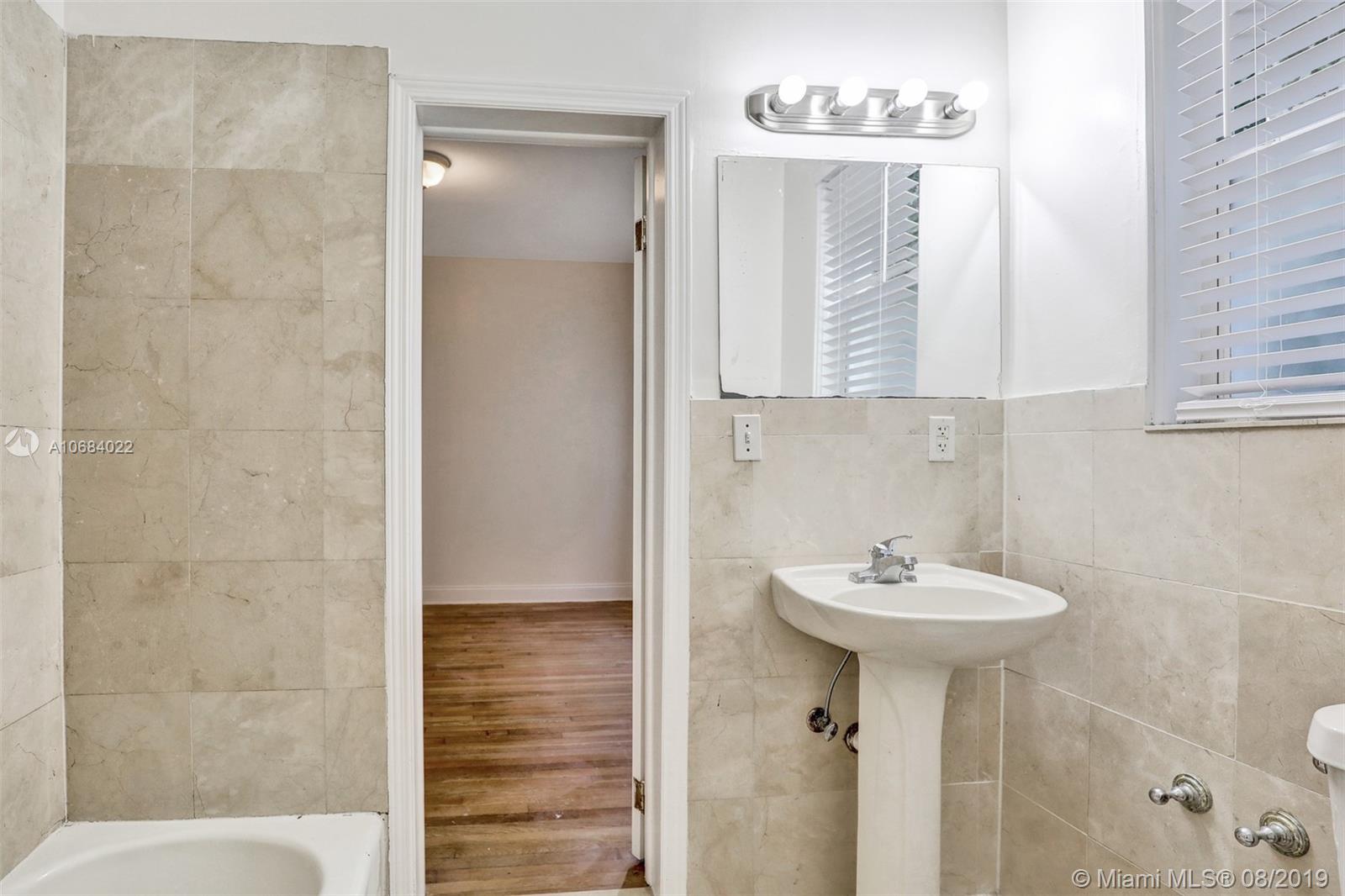 Two Bedroom 1-1/2 bath unit in this beautiful building in the heart of South Beach, just 4 blocks to the beach and six blocks to dining and shopping on Lincoln Road pedestrian mall. This first floor unit features: Hardwood floors, decorative fireplace, crown moldings, gas stove, updated kitchen and bathrooms, lots of natural light! This centrally located building has on-site laundry facilities.
