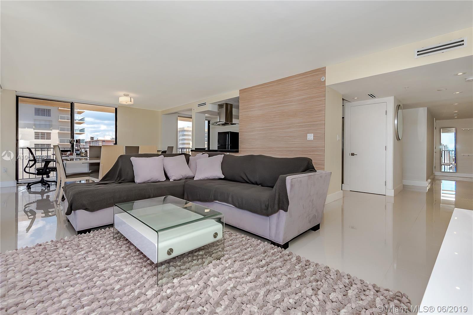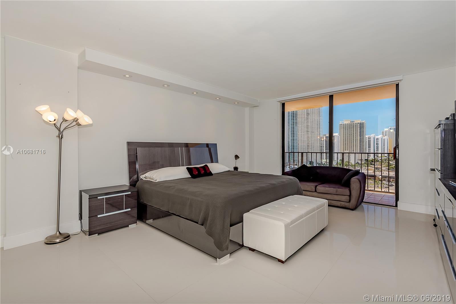 Extensively remodeled very large, corner unit, with huge balcony. Custom kitchen with granite counter tops, stainless steel appliances, porcelain floors throughout and smooth plaster ceilings. Features panoramic views of the Ocean, Sunny Isles and the skyline of Miami. Best line in the building. Unit comes with a storage room and 2 parking spots. Pool, gym, newly remodeled saunas and steam rooms, tennis court, party room, meeting room, library, games room, vending machines. Front gate and lobby have 24h security. Centrally located, it is closed to the shops, restaurants, major highways, Aventura Mall, & two Airports. Just footsteps from the beach. Washer/Dryer in the unit.