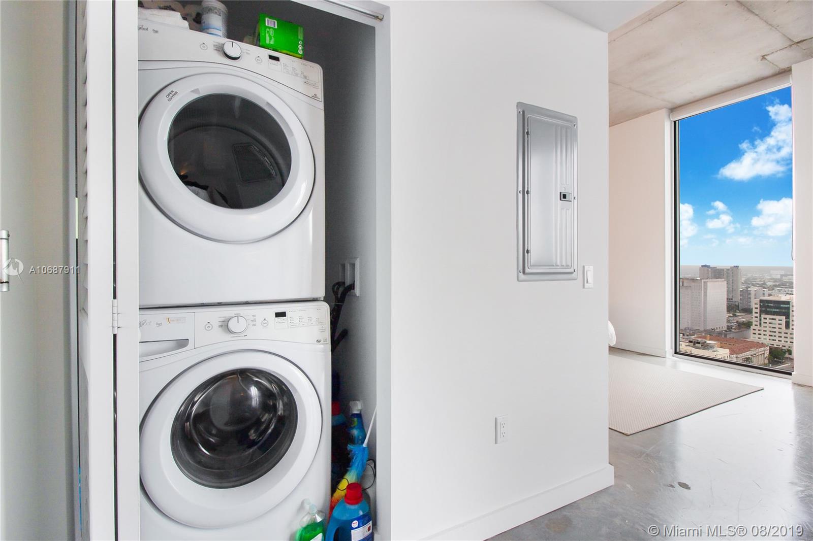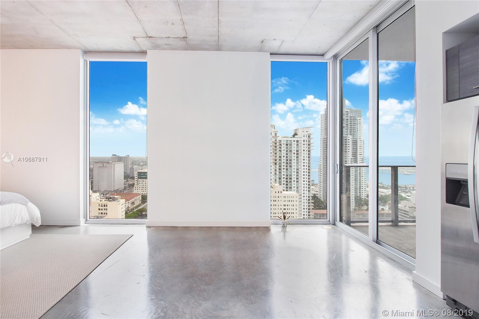 Floor-to-ceiling windows surrounded with impressive skyline & water views in the heart of Downtown Miami, this newer construction 1 bed/1 bath residence is an impeccable example of all that city living should be for the modern city dweller who wants to live-work-play. Contemporary design boasts an open-concept floor plan, modern Italian cabinetry & fixtures, pro-grade appliances complete an open kitchen perfect for entertaining, polished concrete flooring, daily conveniences of walk-in closet and washer&dryer. Just outside your door, all that downtown Miami has to offer is at your feet - walking distance to Brickell City Center, Bayside, Biscayne Bay, American Airlines Arena, Perez Art Museum, Whole Foods, People Mover, easy access to Metro upscale restaurants & shopping. Easy to show!