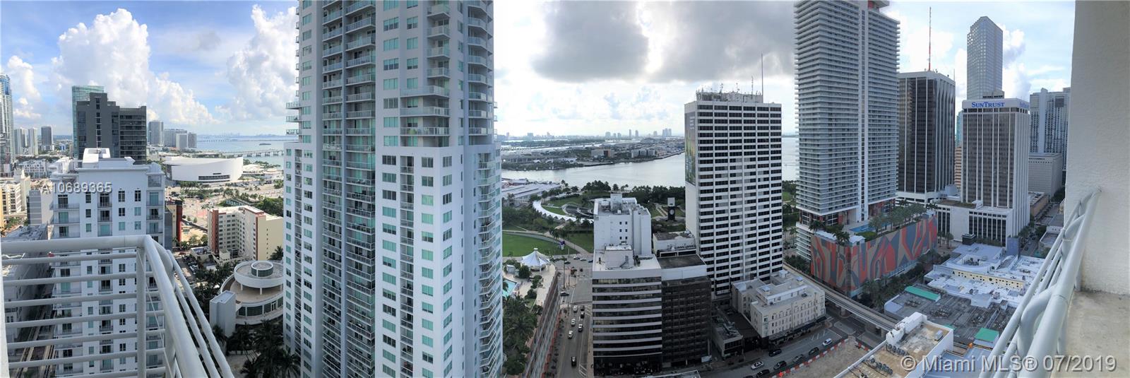 Beautiful 2/2 corner unit with master suite and split bedrooms; both enclosed. All new appliances, painted 12' high ceilings. Italian white glossy kitchen cabinets, marble (bathrooms) and chic epoxy flooring, granite counter tops in kitchen & baths. Rap-around balcony with views of bay, ocean and skyline in the heart of Miami’s Downtown. Walking distance to Whole Foods, many fashionable restaurants, banks, Bayside, Brickell, Free Metro mover access. 2 pools, lap pool located on first floor & another at rooftop together with gym, sauna & breathtaking views. Club room with billiard table on the 2nd floor, great for entertaining including TV, lounge area and kitchenette with city view. Cable, water & internet included in HOA. EXCELLENT OPPORTUNITY FOR INVESTORS. SELLER FINANCING IS AVAILABLE.